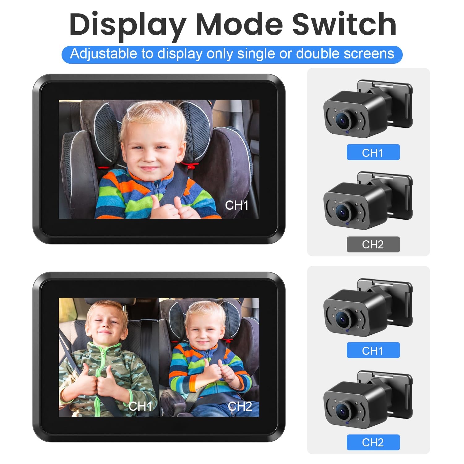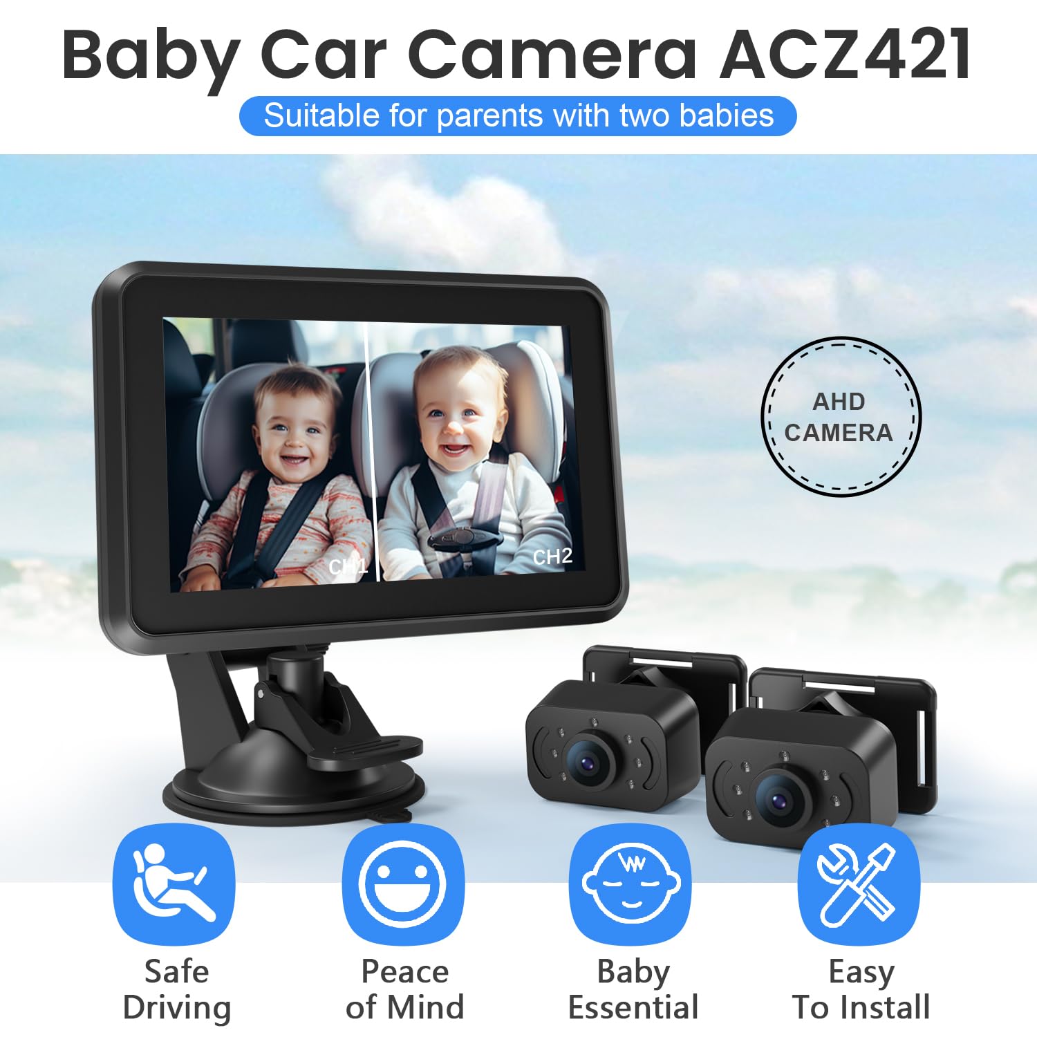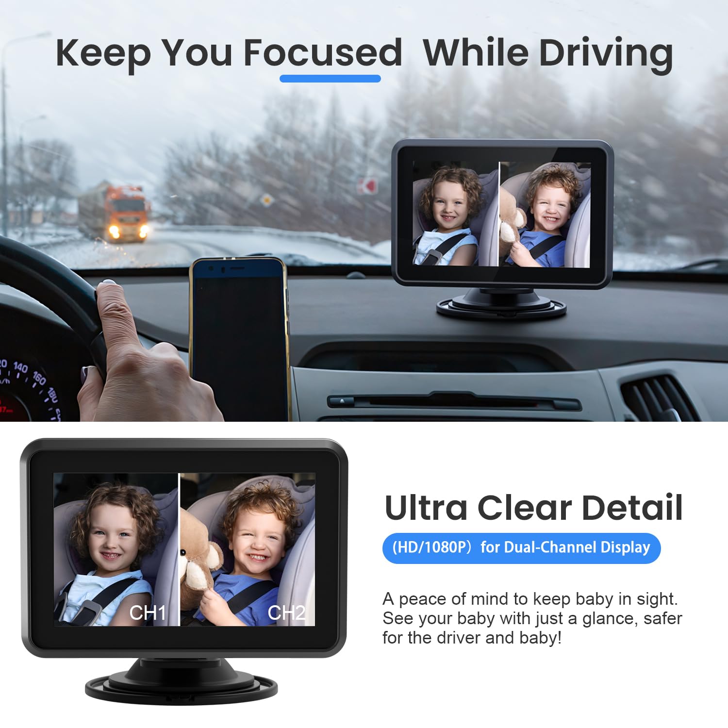 • FOR PARENTS WITH 2 KIDS:Dual baby car camera suitable for parents with two babies and can display 2 camera at the same time. Upgraded 940nm IR AHD camera focuses on Ultra HD images, perfect for day and night use.