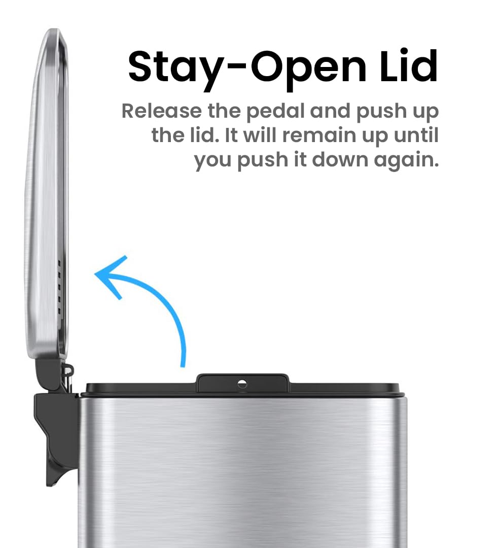 SoftStep is the smoothest, most sophisticated step trash can you will ever own. The ergonomically-designed pedal requires minimal force to operate. The gentle lid close is smooth and silent. The elegant, brushed stainless steel finish is fingerprint-proof and smudge-resistant, making SoftStep the perfect kitchen trash can. The easy to replace air damper means this step trash can will provide years of like-new performance.