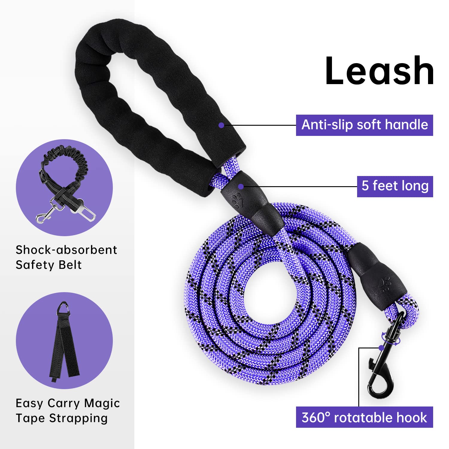 • ≡ PERFECT HARNESS SET ≡ Our dog harness set includes 1 professional dog leash & 1 retractable seatbelt & 1 storage strap (easy to store the harness and the leash).The thoughtfully considered combination can meet various needs, and each carefully selected accessories protect the safety of the dog