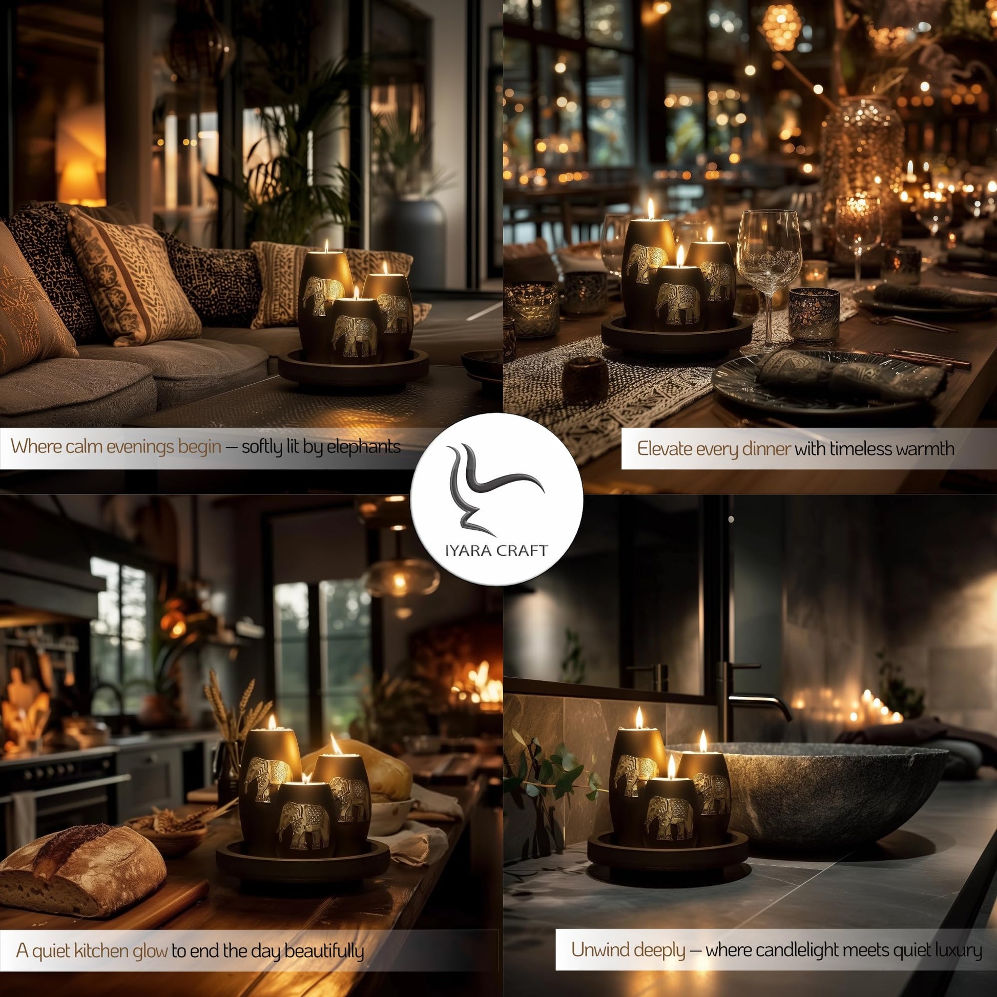IYARA CRAFT Elephant Tealight Candle Holder Set – 3 Handmade Wood Holders with Tray – Elegant Home Decor & Thoughtful Gift for Mother’s Day, Birthday, Housewarming
