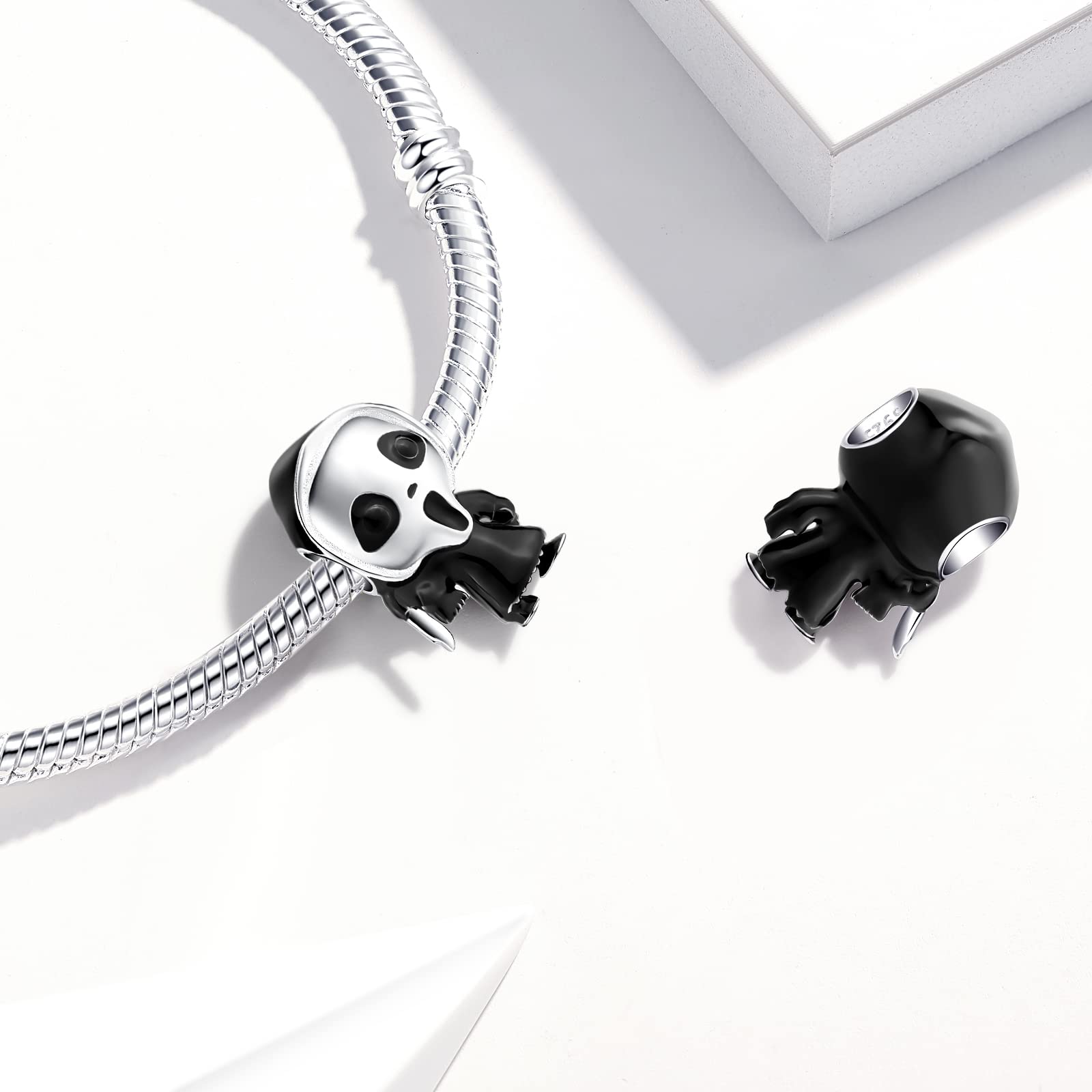 JAHN Sterling Silver Halloween Charms, Compatible with Pandora, for Bracelets and Necklaces - Ghost Mask Charm
