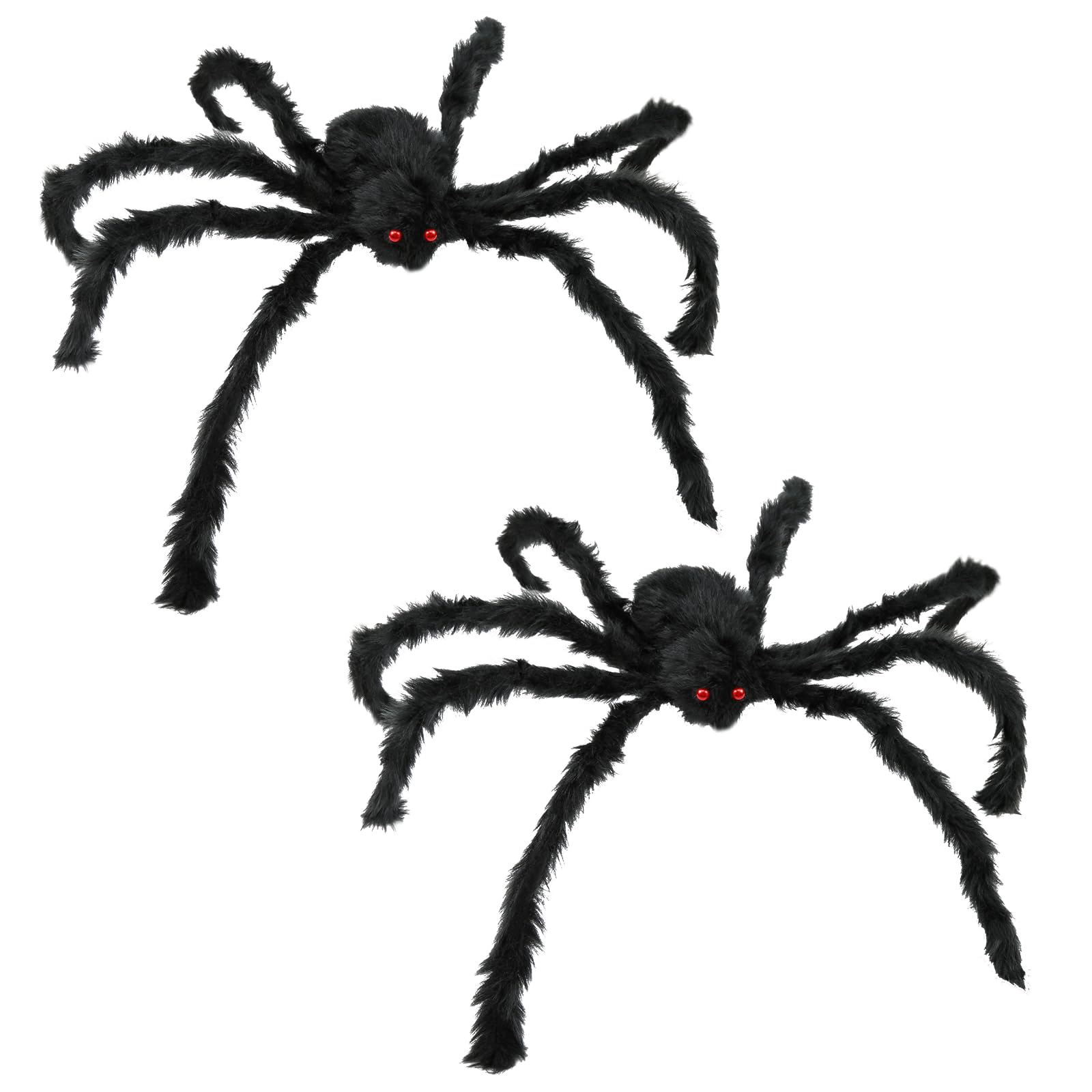 JAMIEWIN Giant Spider for Halloween Decoration 2 Pack, 55 inch Large Hairy Fake Spider Props, Scary Halloween Spider Decoration Outdoor Indoor House Party Yard