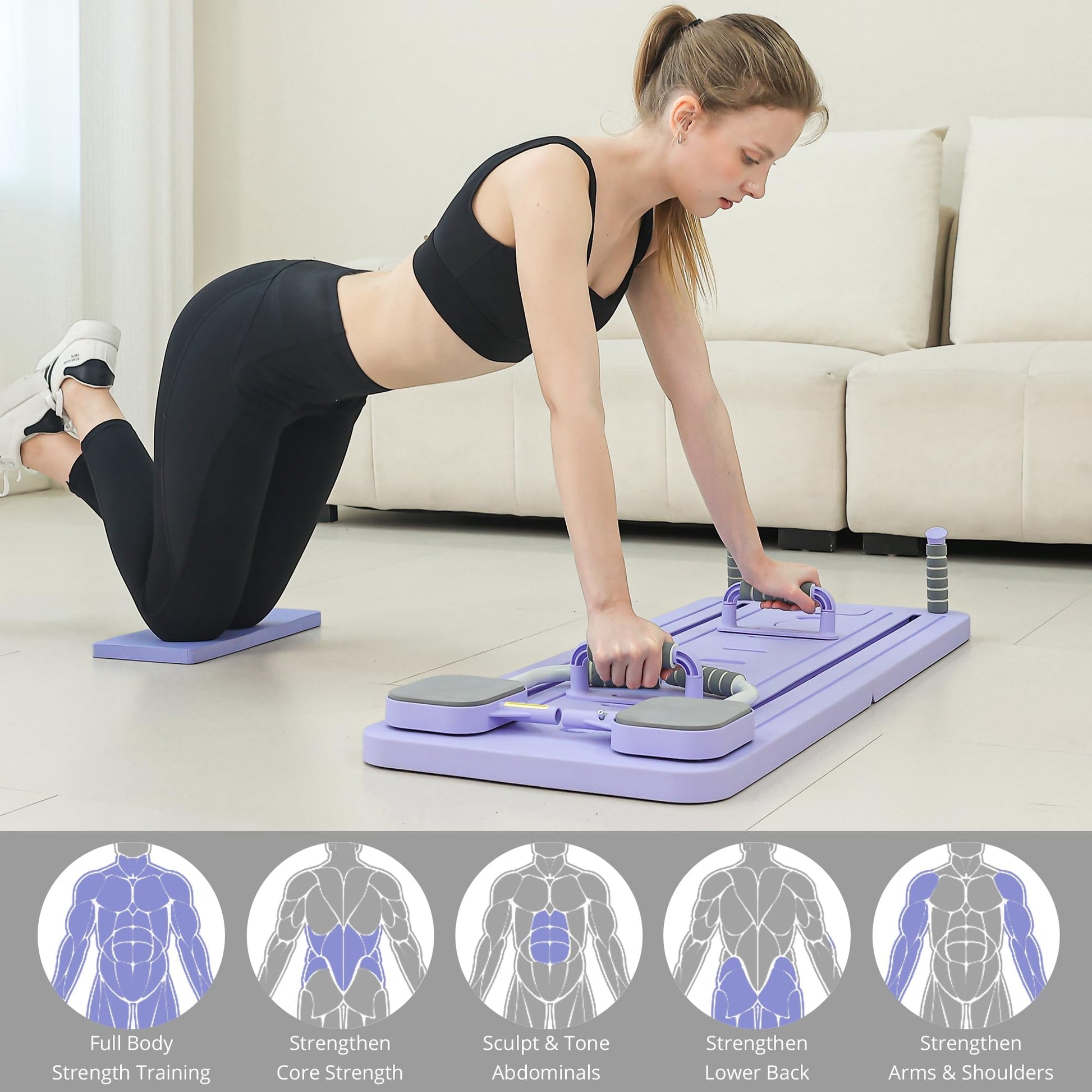 JANUA Pilates Board - Pilates Reformer Set, Multi-Purpose Foldable Pilates Reformer Board for Home, 5 in 1 Pilates Sliding Board (Purple) (Purple Set)