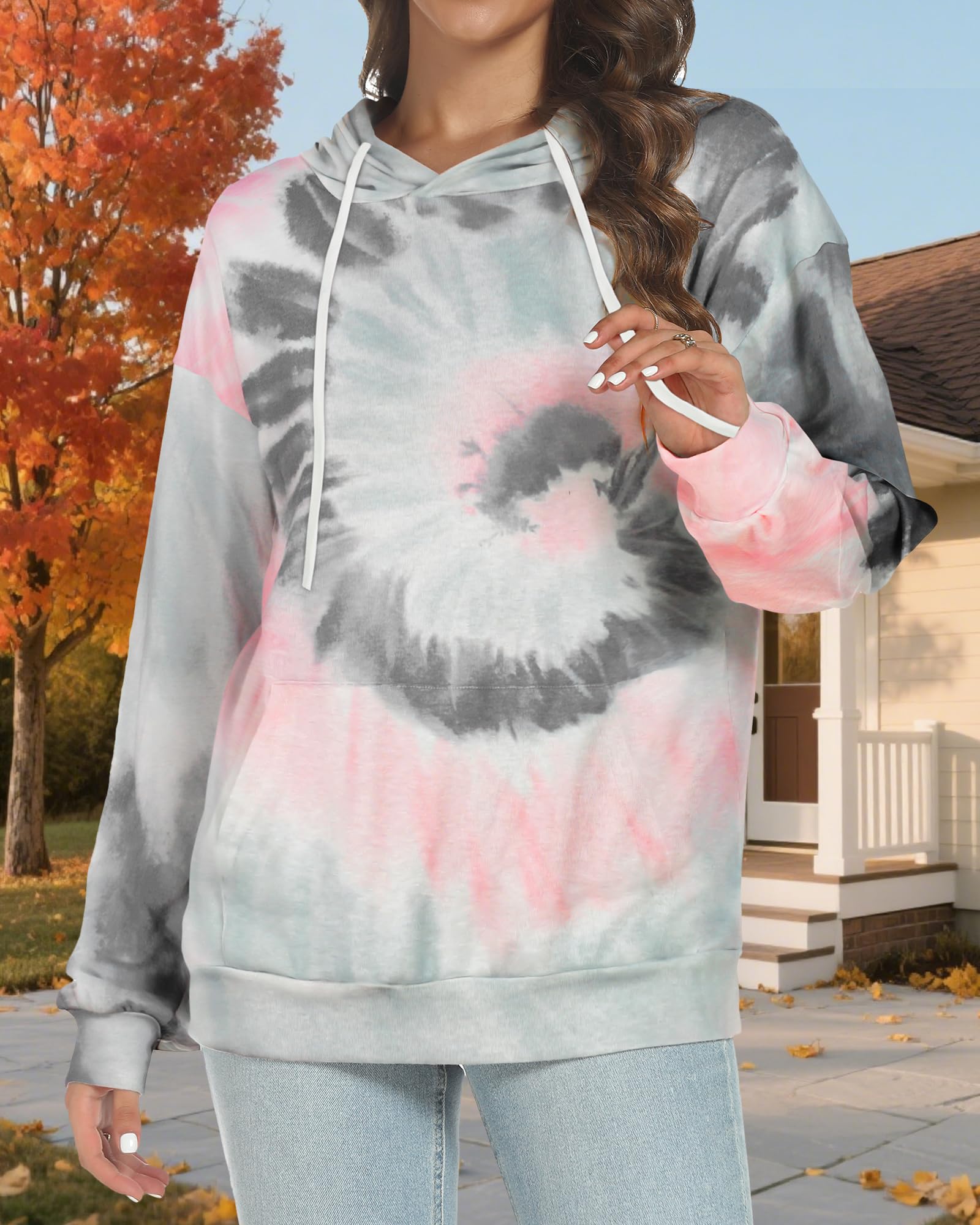 rosemia Womens 2023 Hooded Drawstring Pullover Sweatshirts Casual Long Sleeve Basis Tops Shirts(Grey Pink Tie Dye,XL)