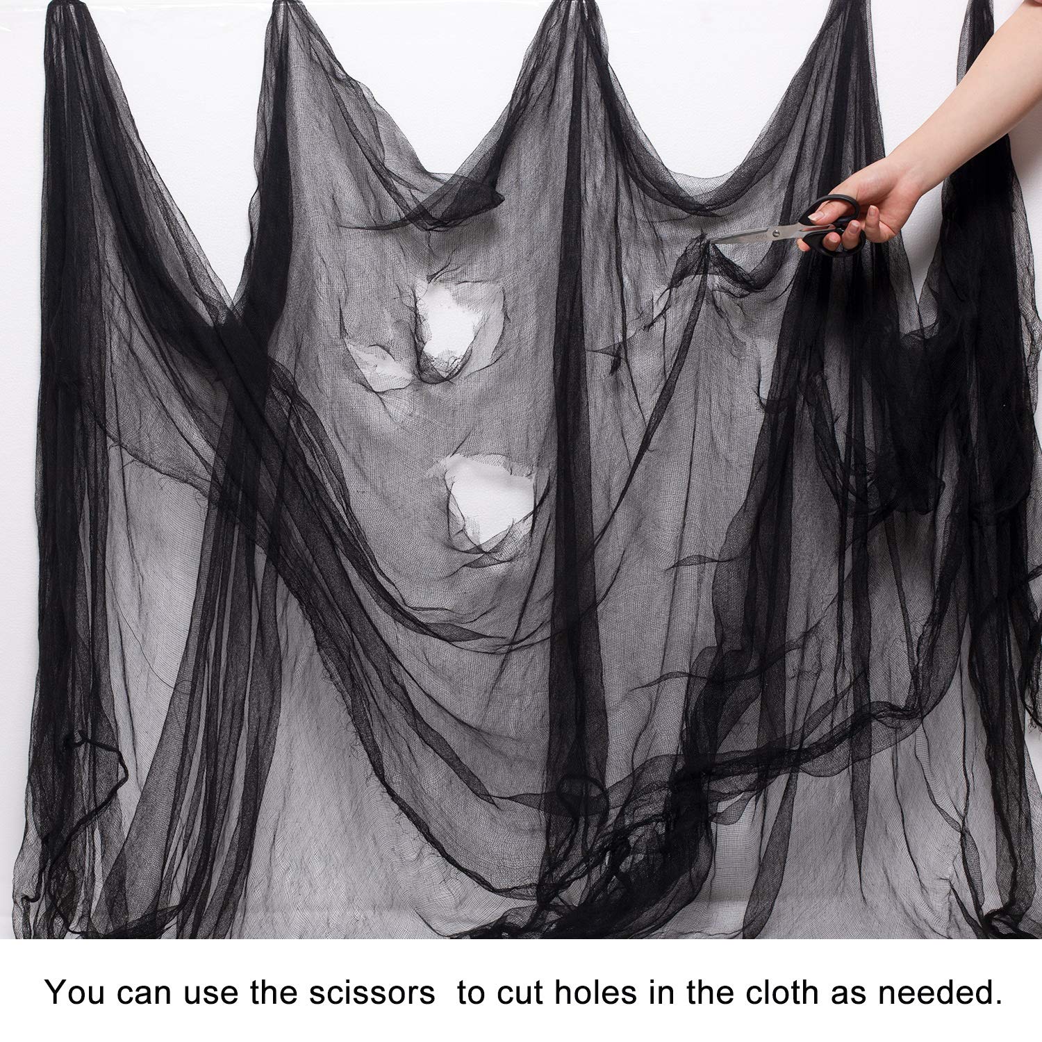 Whaline Halloween Black Creepy Cloth 276 x 87 inch Spooky Halloween Decoration Black Spooky Fabric Cloth Windows Doorways Scary Gauze for Haunted Houses Yard Wall Indoor Outdoor Party Decor Supplies
