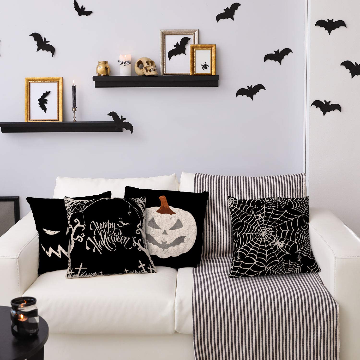 • SCARY DESIGN - Colored in white and black, patterned with pumpkin and web, printed with the words of 'Happy Halloween', the pillow covers look scary, fitting with the theme of Halloween and adding more fun to Halloween.