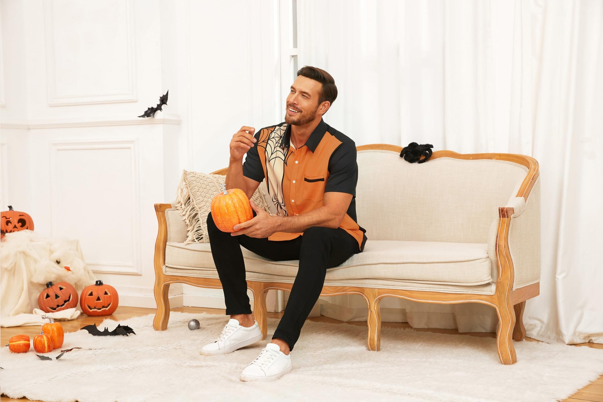 • 【Cute Halloween Patterns】Add a Halloween atmosphere by wearing this men's Halloween shirt.
