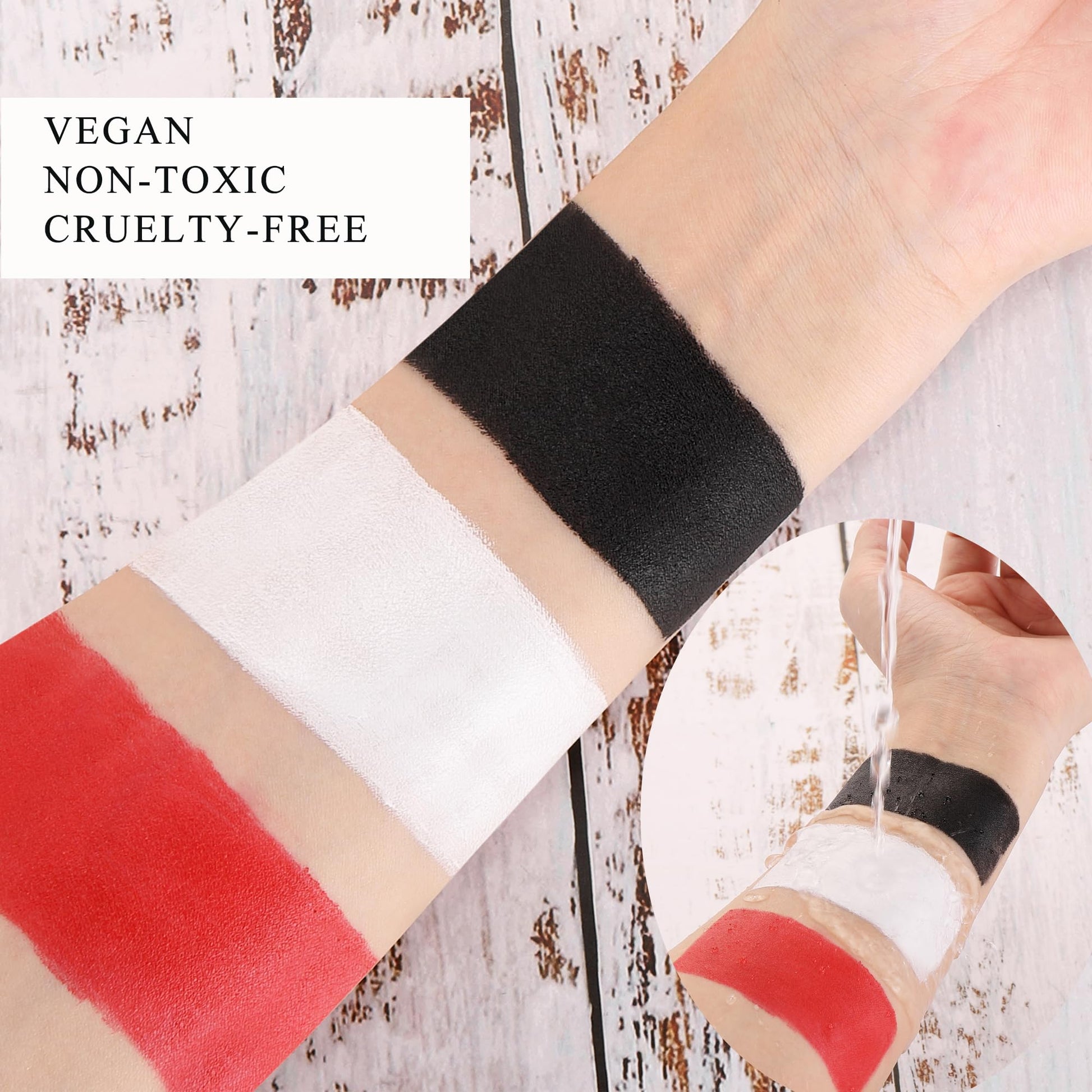 • SUIT FOR MANY OCCATION - High pigment classic black white face body paint great for all varieties of face painting applications for Campfire Party, Fun Themed Party, Carnivals, Fancy ball, Fancy Dress, Festival Performances, Fiesta, Halloween and other occasions, for cosplay costume, artistic makeup or special stage effects, especially for clown joker vampire zombie skull skeleton makeup. Ideal for both professionals and beginners.