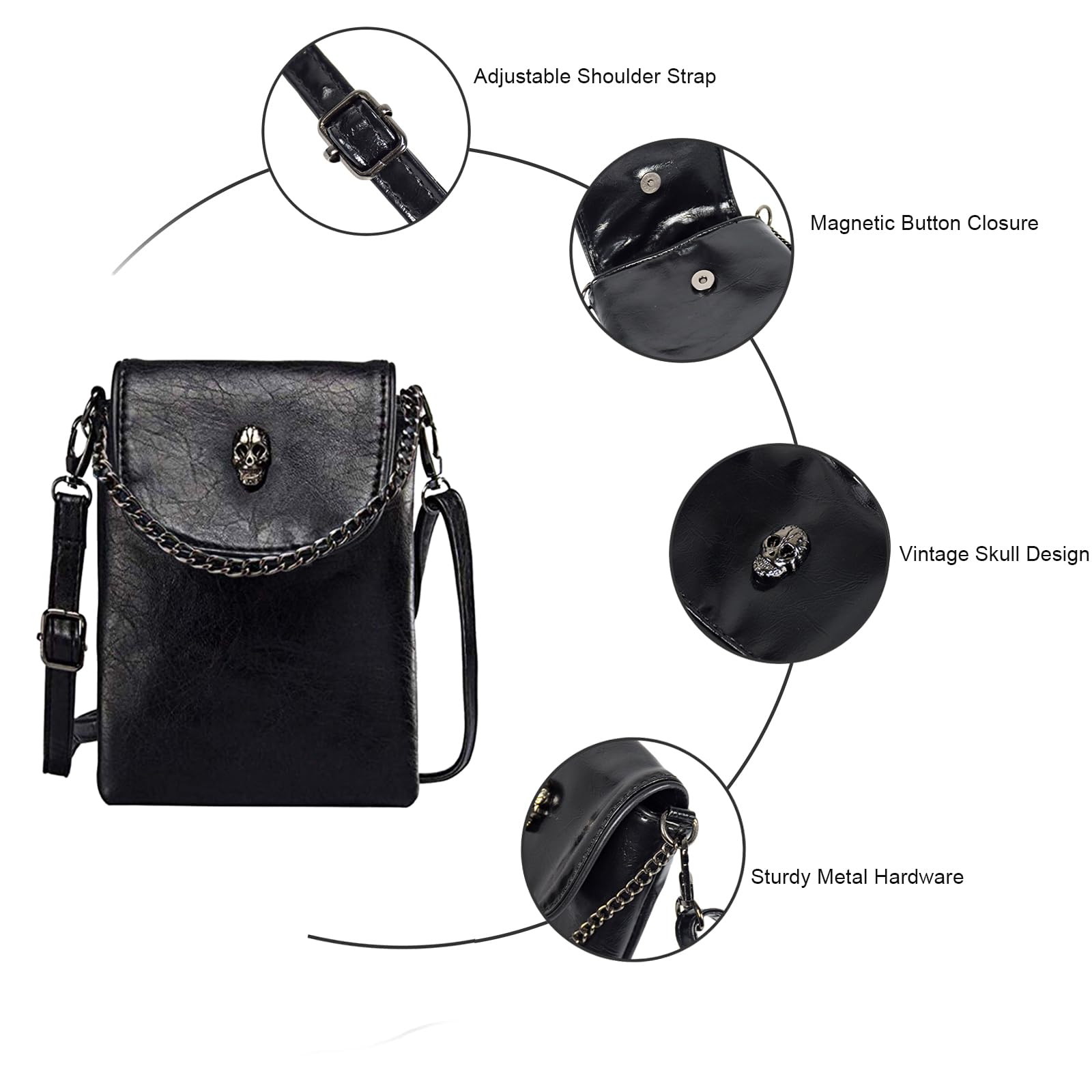 WITERY Small Crossbody Cell Phone Purse Gothic Leather Bag Shoulder Travel Purse