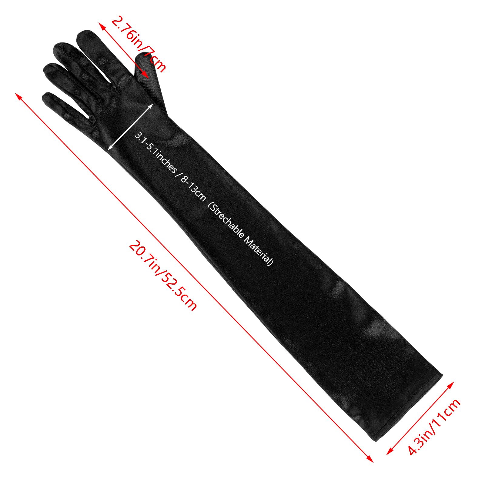 Wobe Long Opera Party 20s Satin Gloves Stretchy Adult Size 20.7' Elbow Length 1920s Opera Satin Long Gloves Classic Sun Protection Gloves Wedding Bride Etiquette Gloves for Women Girls