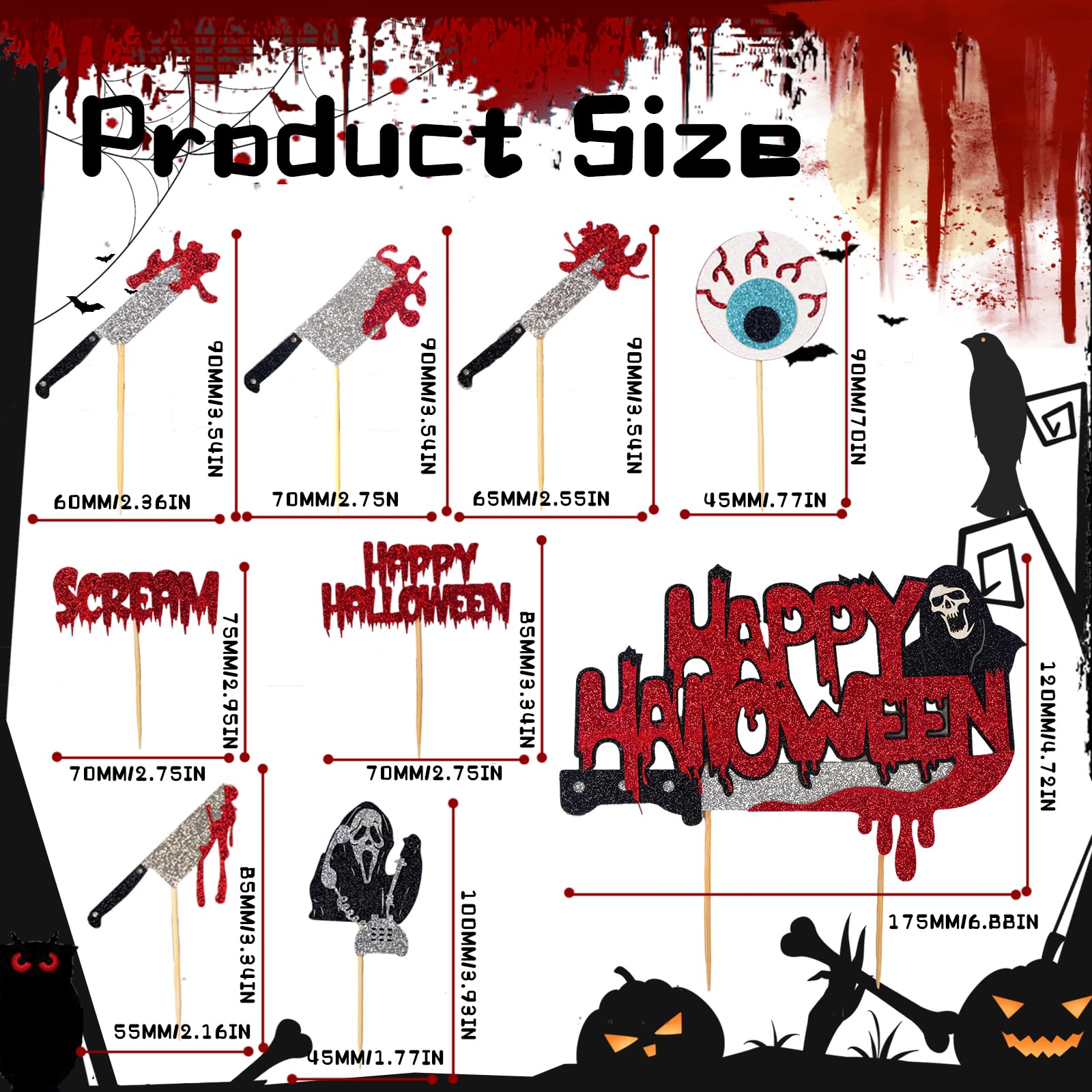 • Upgrade Quality and Right Size: Made of 300-gram glitter cardstock, bright colors. Safe to use, the glitter won’t fall on the frosting, keeping your cake clean. The sparkling, blood-stained details add an eerie, spooky vibe, perfect for Halloween