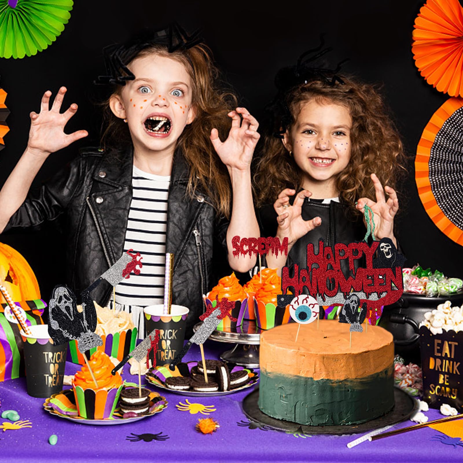 Wolpark 25pcs Have a Killer Halloween Cake Toppers Glitter Scream Cupcake Toppers Ghost Face Decorations for Scream Theme Birthday Halloween Party Cake Decorations Supplies