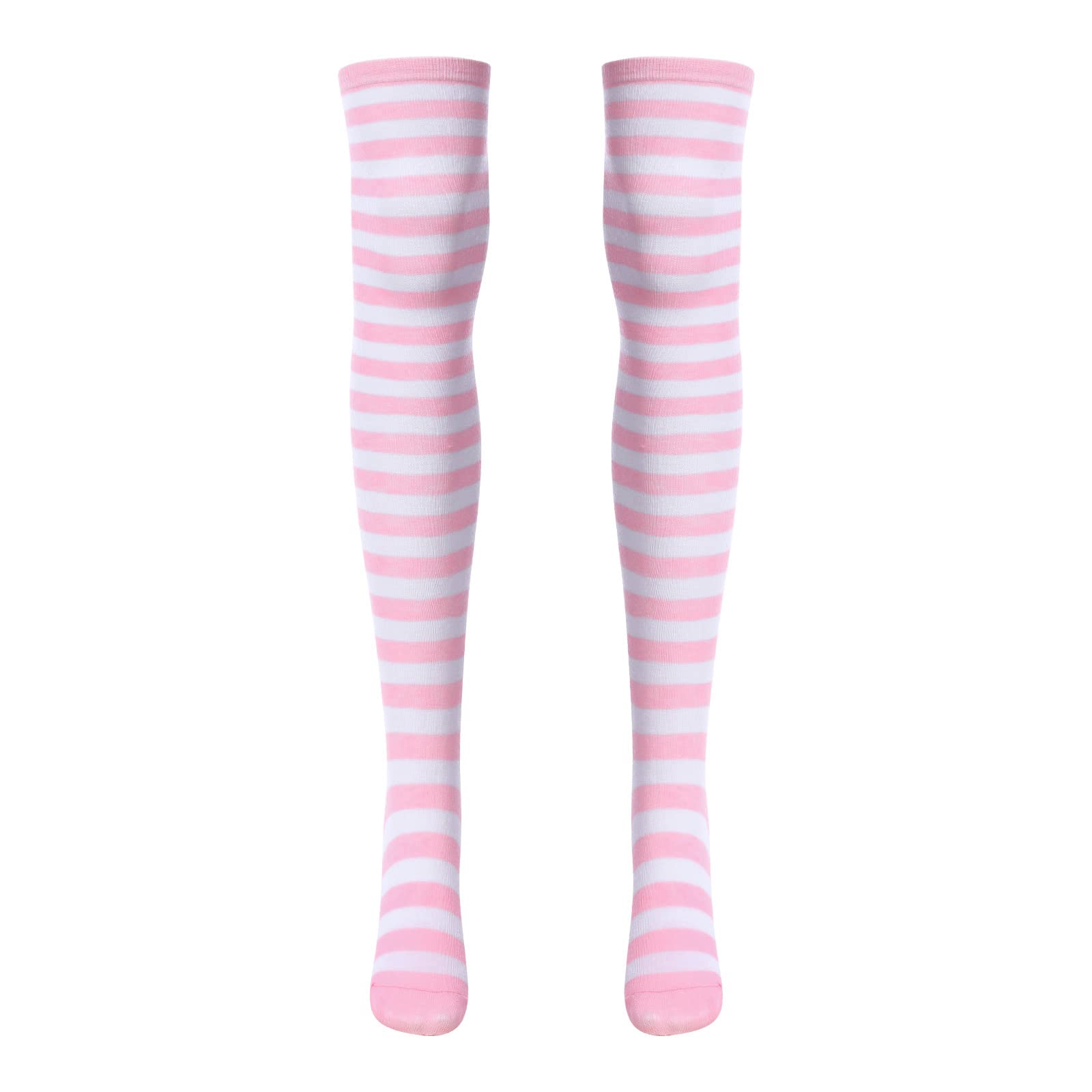 Women Cute Kawaii Lingerie set Halter Strap Micro Bra Tiny Panty Garter Belt Striped Stockings 4Pcs Underwear Swimwear Bathing Suit Pink + White Stripe One Size