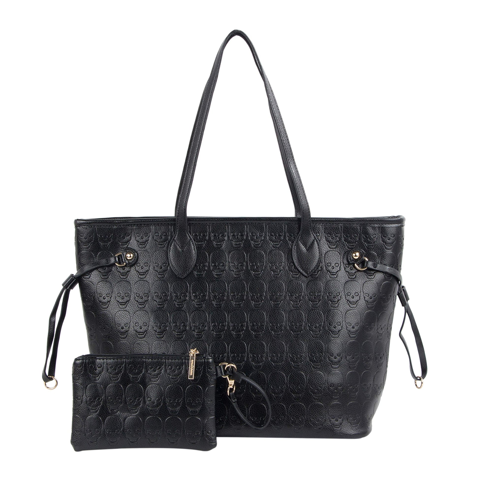 Women Devil Skull Purse Handbags Pu Leather Top-Handle Satchel Shopping Bag with Clutch Purse Black