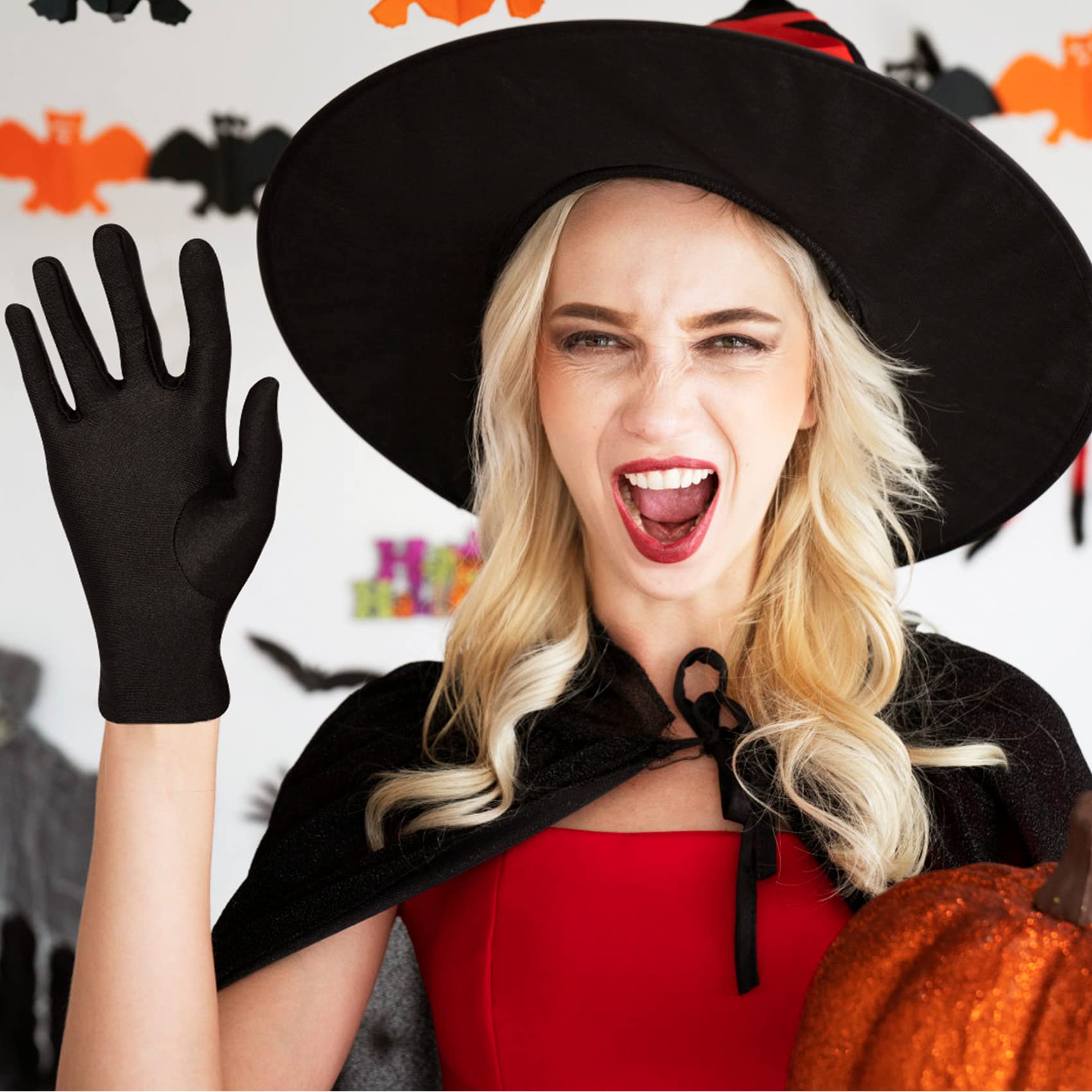 Women Formal Bridal Short Satin Banquet Party Wedding Black Opera Gloves Wrist Length for Wedding Evening Party (Black)