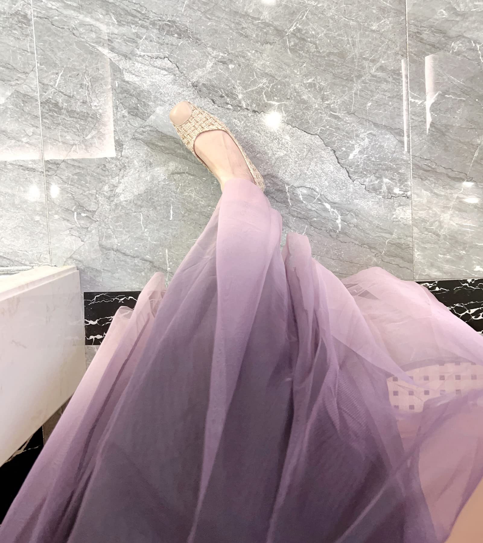 Women’s Tulle Skirts Midi Elastic High Waist Pleated Mesh Flowy A-Line Party Long Tutu Skirt Gradient Purple
