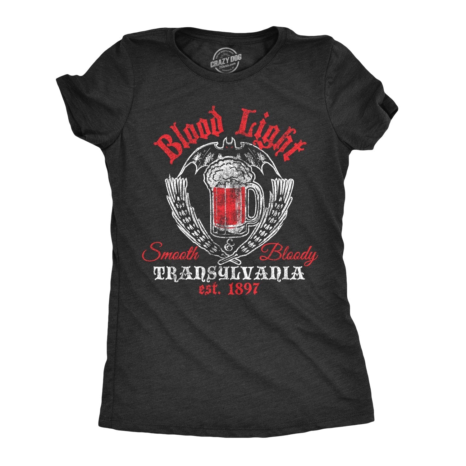 Womens Blood Light T Shirt Funny Beer Parody Vampire Halloween Tee for Ladies Funny T Shirts Halloween Tops for Women Cool Beer Top Women's Novelty Tees Black - XL