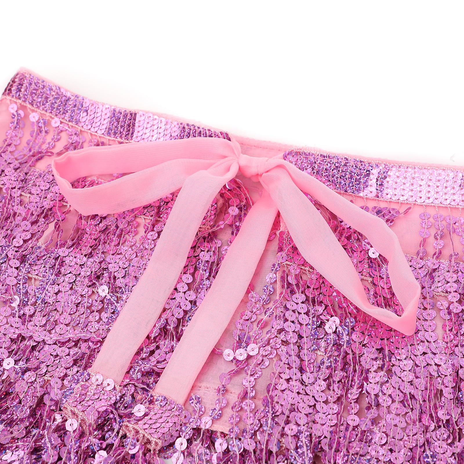 Women's Sequin Tassel Skirts Sparkly Rave Fringe Hip Scarf for Festival Costume(Pink)