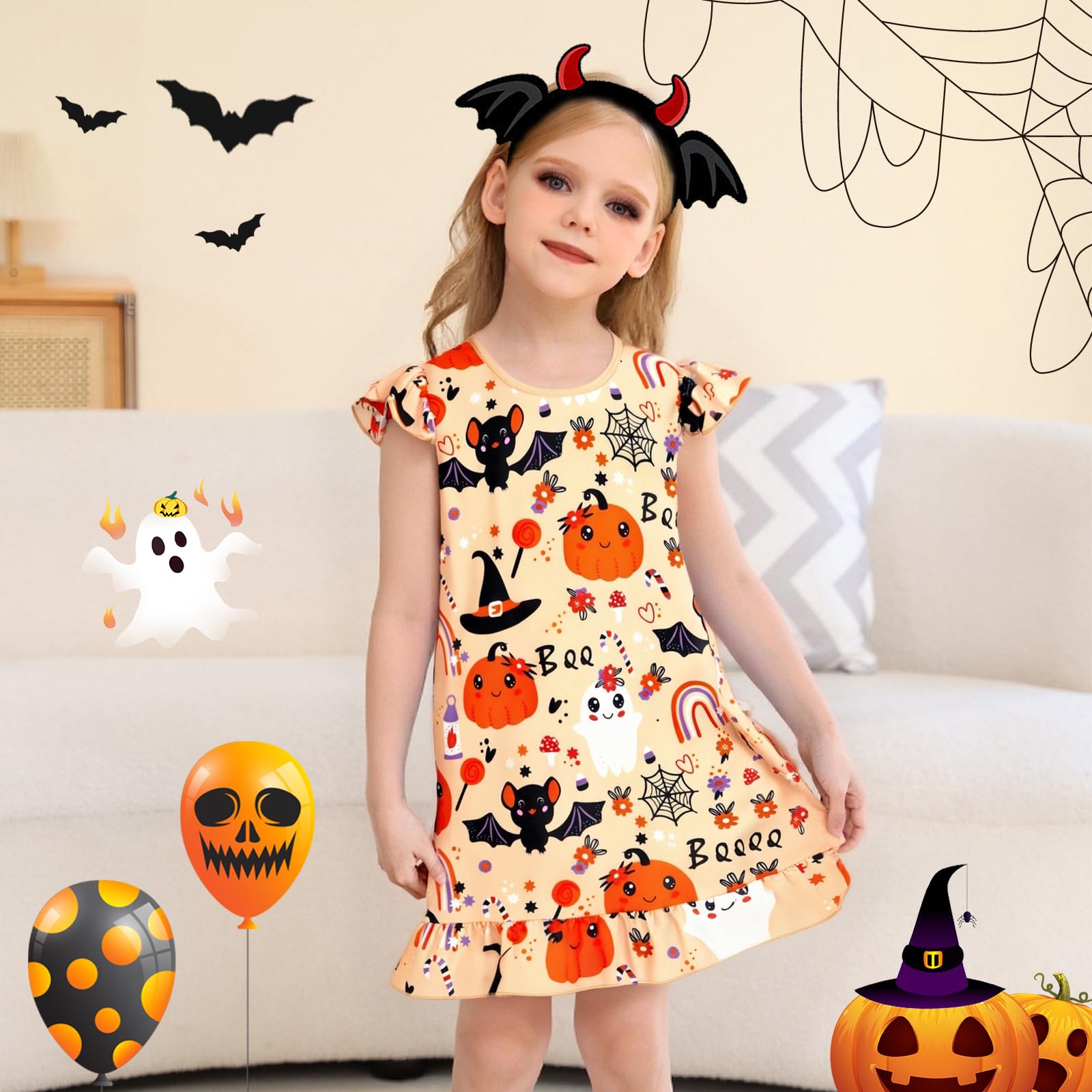 • Girls halloween nightgowns made of high quality milk silk and spandex, ultra soft material, more skin friendly and breathable, very comfortable for wearing, Protect your child's sleep quality.
