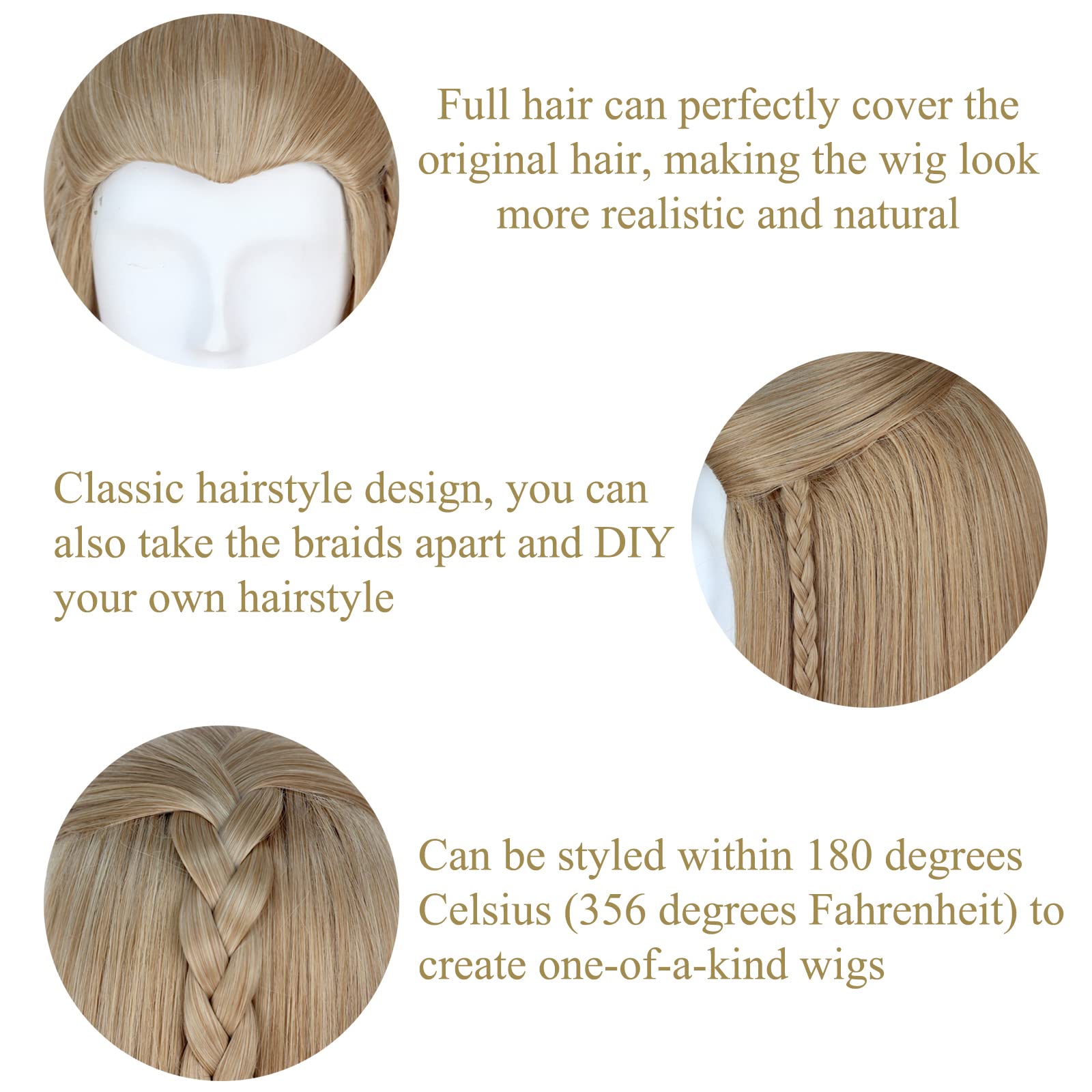 • Material of Long Braids Wig: Men Blonde wig is made of high temperature synthetic fiber. Natural luster, soft texture, tangle free, more lightweight.