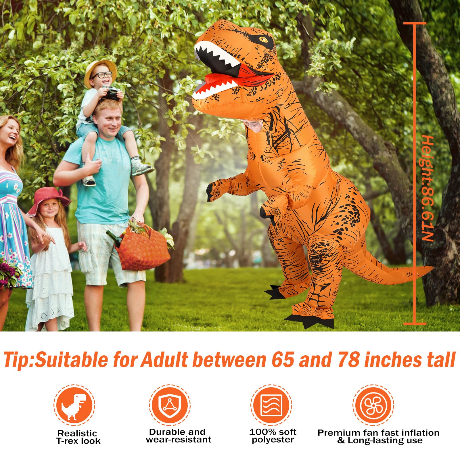 • Comfort & Durability: Made from lightweight, durable 100% polyester, this inflatable dinosaur costume adult is designed for easy movement and long-lasting wear, ensuring you stay inflated and comfortable throughout the event