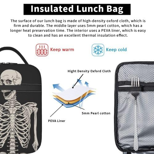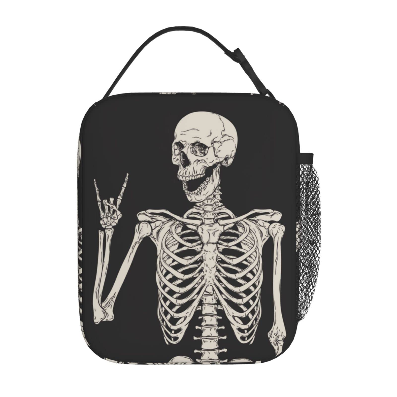 YETTA YANG Halloween Skeleton Funny Skull Portable Lunch Bag Insulated Lunch Box Reusable Totes For Women Men Work Picnic Camping