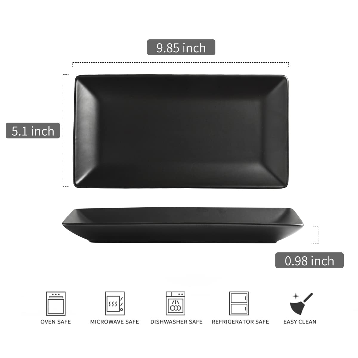 YHOSSEUN Ceramic Serving Platters Set of 4, Rectangular Serving Platters and Trays for Food, Sushi, 9.8 In Serving Dishes for Entertaining, Matte Black Serving Plate Halloween Table Decor