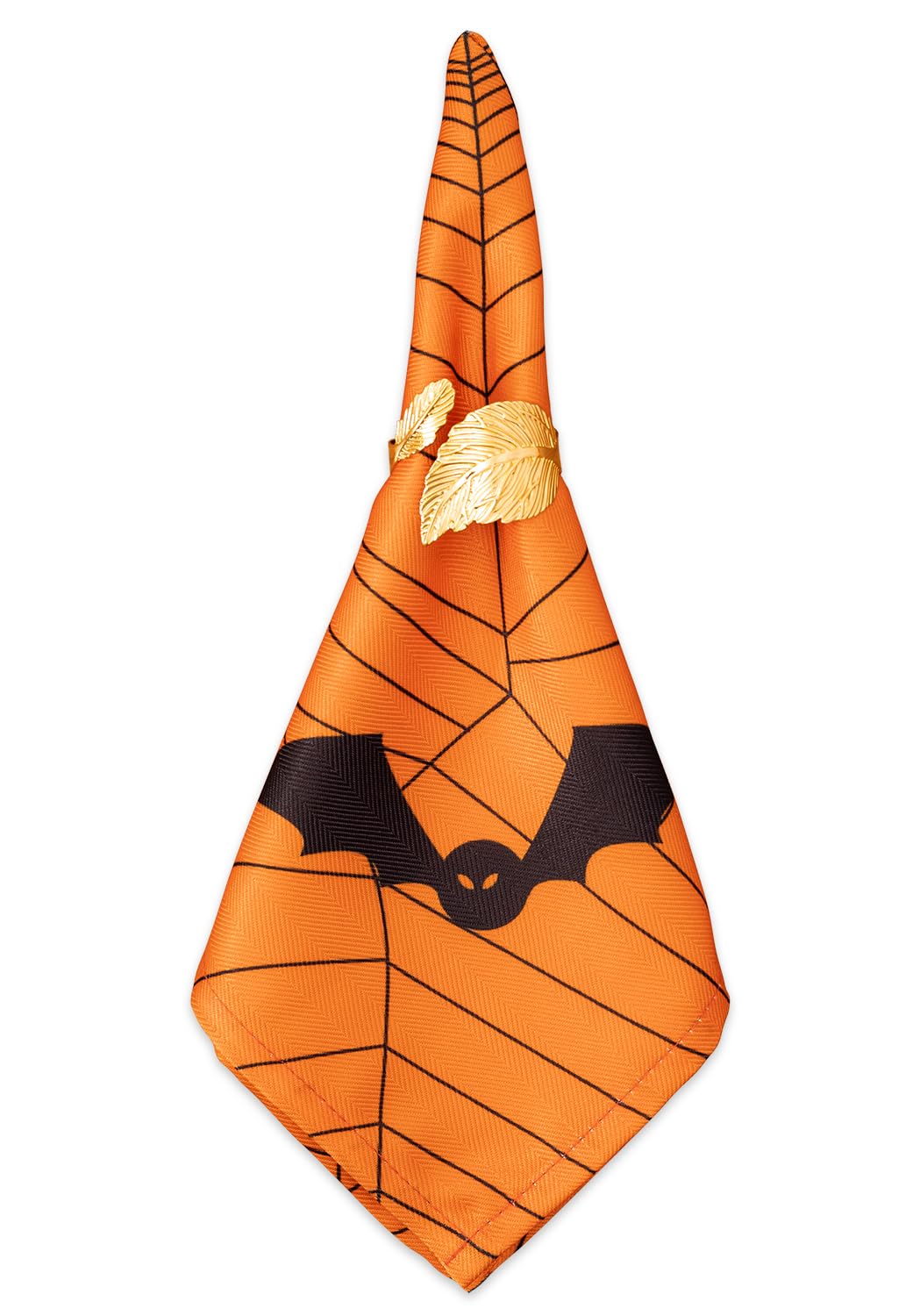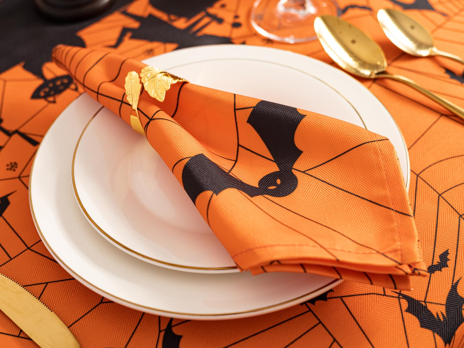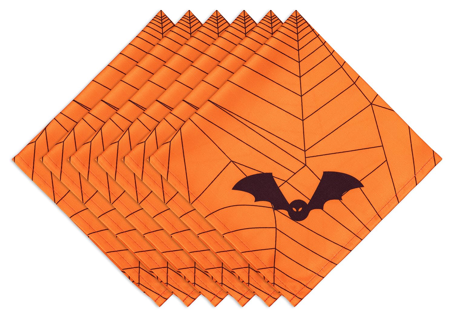 • ADD A CREEPY FINISHING TOUCH: This printed napkin is the perfect addition to decorate your tabletop for Halloween parties; The hanging bats and spider web over the orange napkin make a cute, festive decoration.