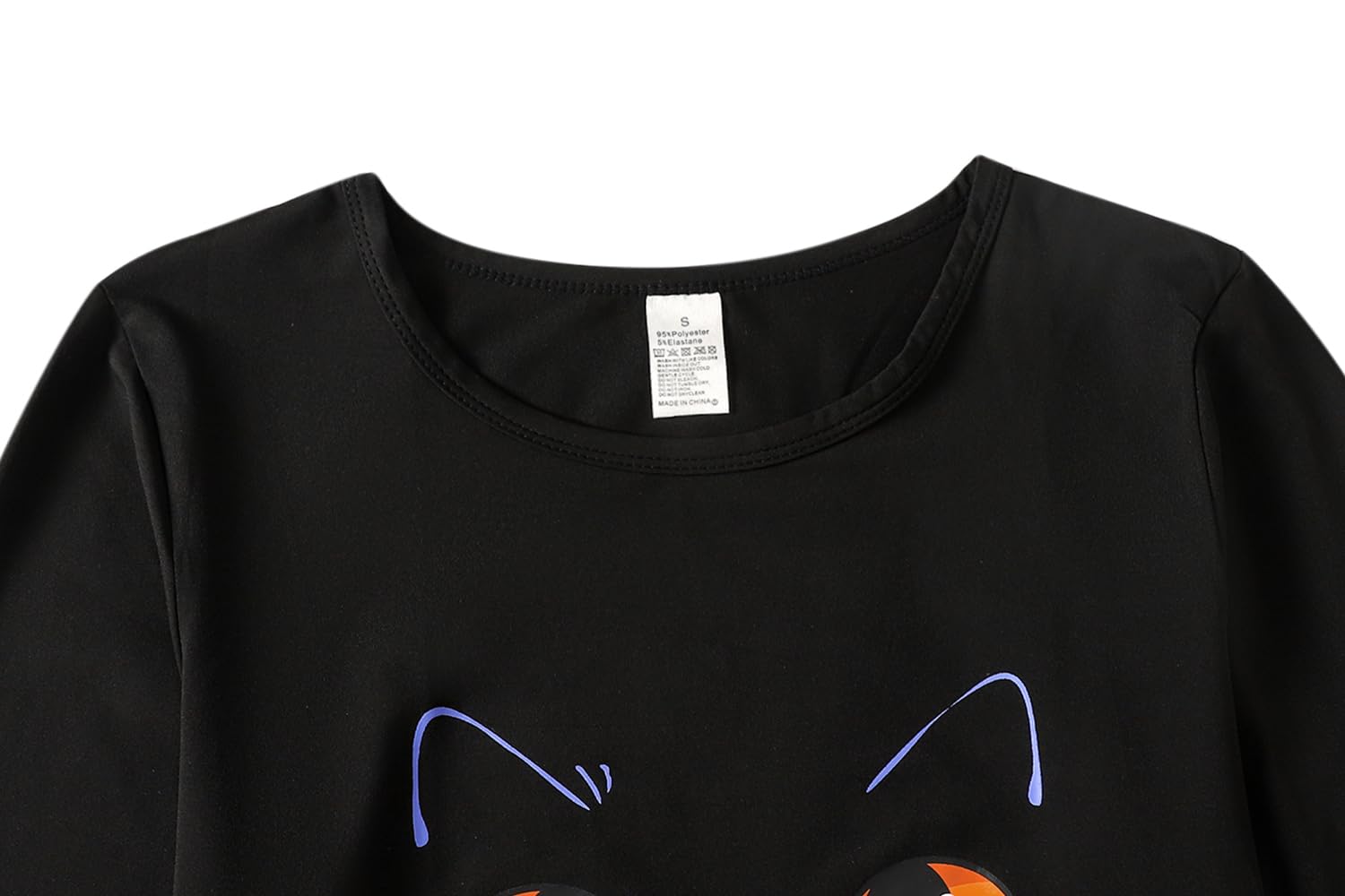 YIJIU Women's Halloween Pajama Set Printed Long Sleeve Top & Long Pants Sleepwear Holiday 2 Piece Pjs Sets,Halloween Black,3XL