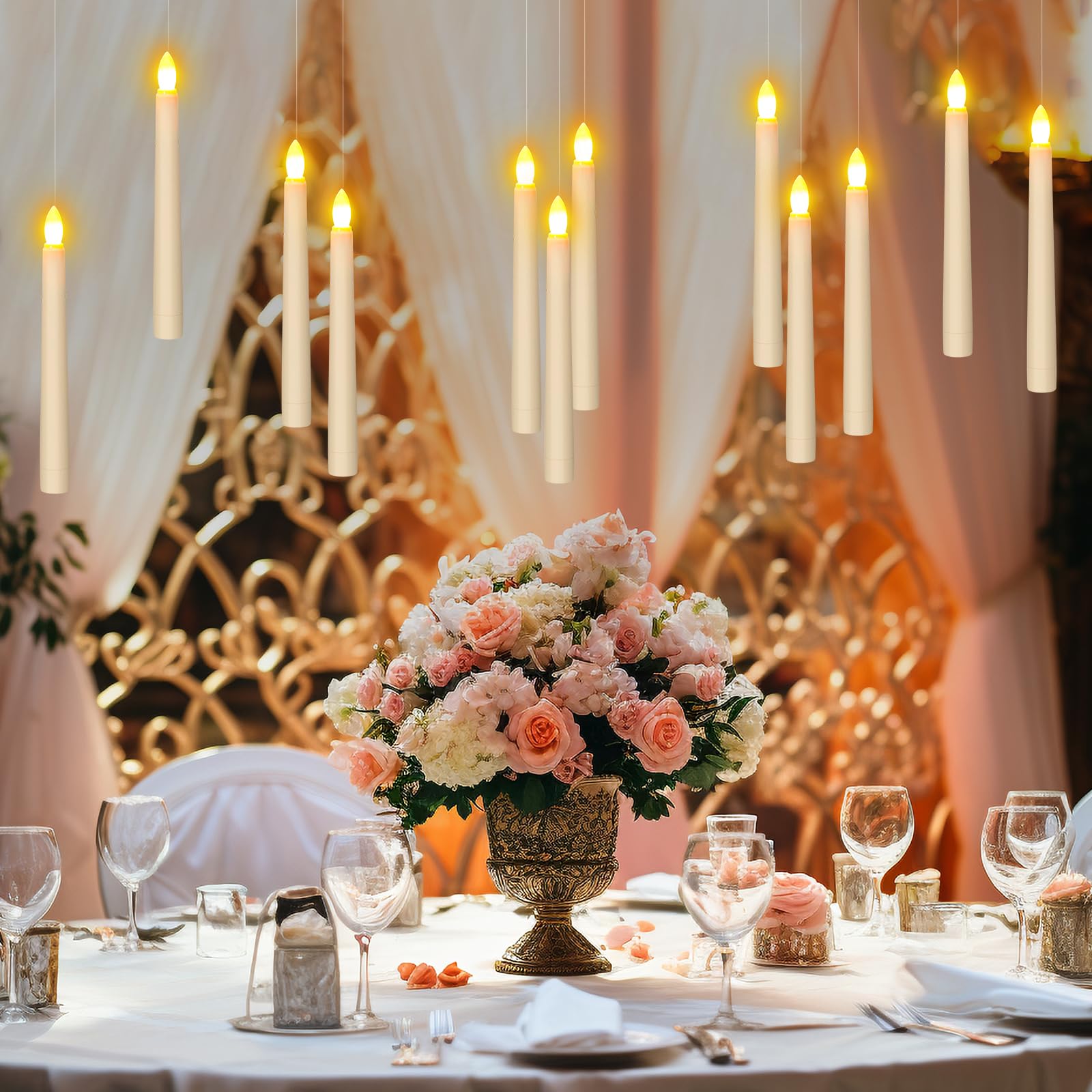 • Flameless Floating Taper Candles: The LED candles light up without real flame and do not drip hot wax; No worries about if your young children or pets knock the flameless candles over. Safe for home holiday daily use