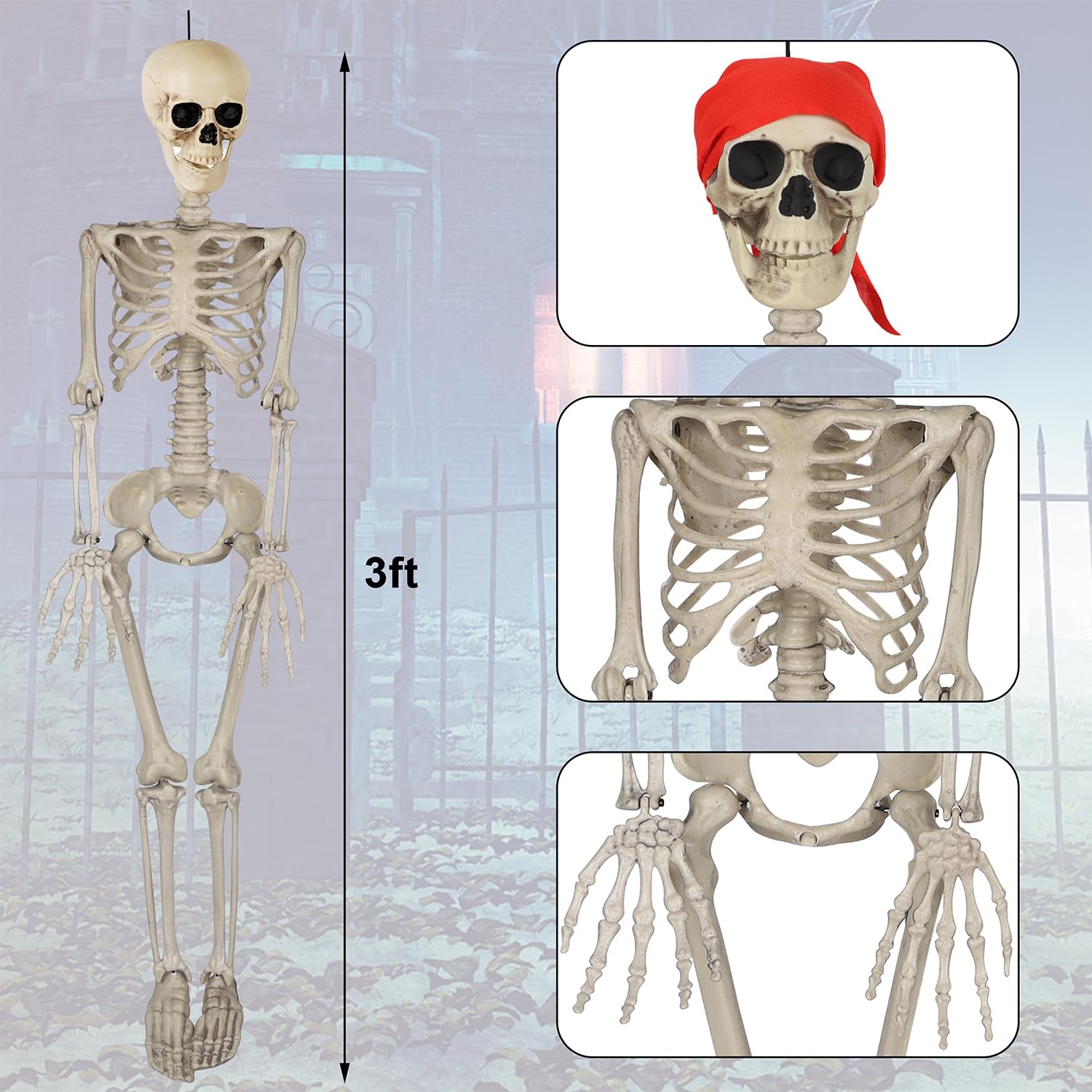 yosager 3ft/90cm Halloween Skeleton, Full Body Skeleton, Life Size Human Bones Pose-N-Stay Realistic with Adjustable Joints, Pose Skeleton Prop, Haunted House Decor