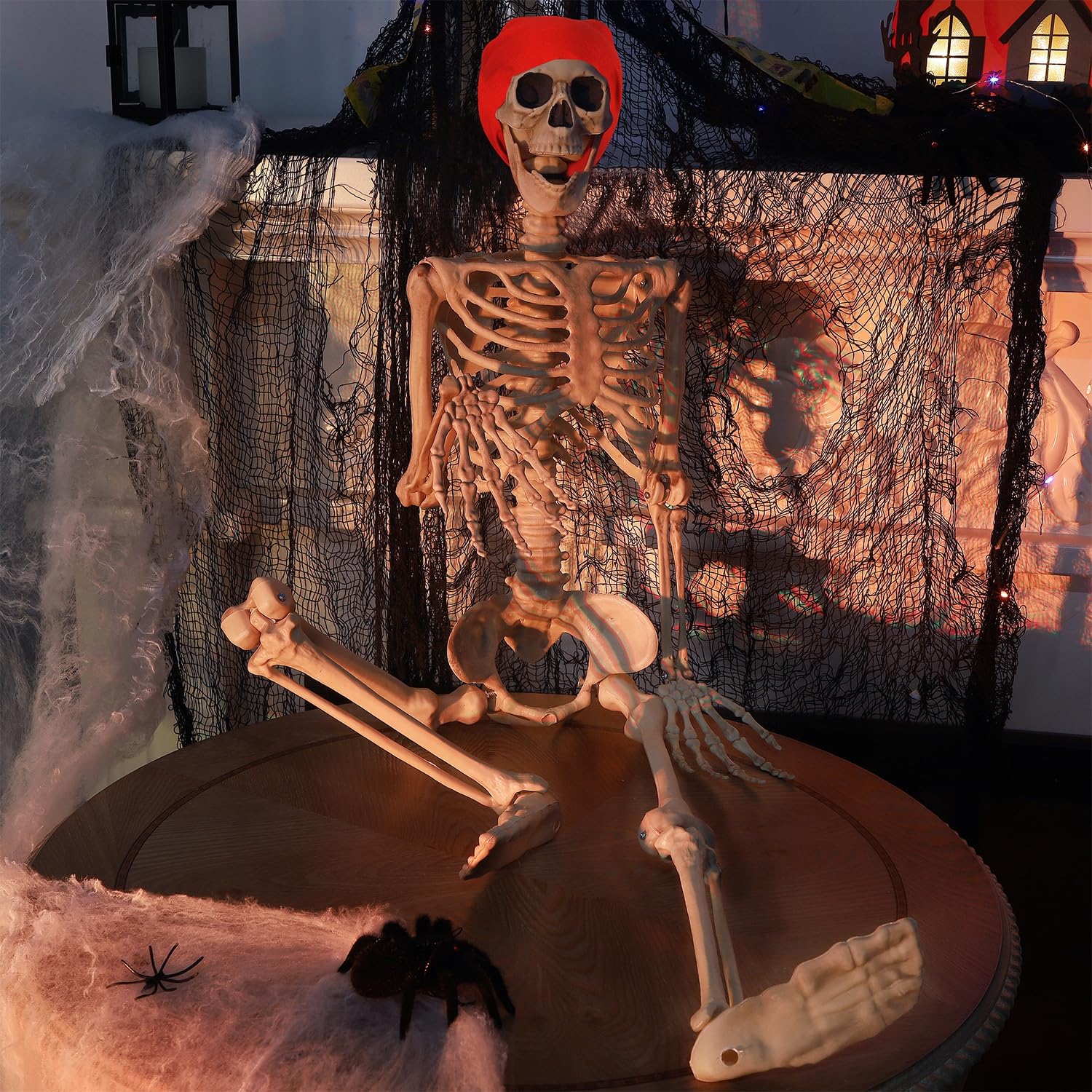 • HIGH QUALITY: The Human Bones Full Body Made from high quality plastic and painted to resemble bone color. All weather articulated skeleton, makes it strong and sturdy. When you receive this product, the skull will be placed separately, please install it, it might be a little tight for fix the skull tightly, please push a little hard