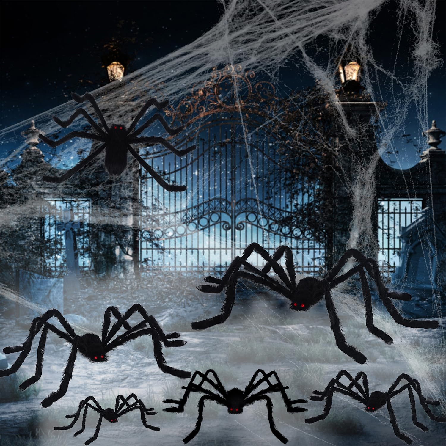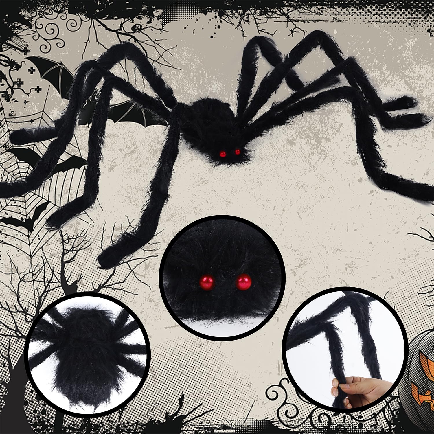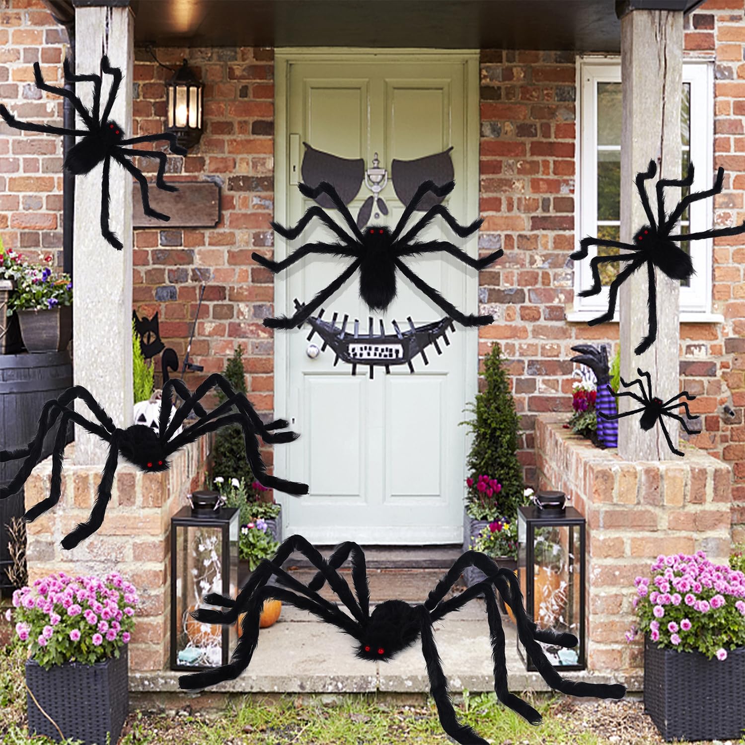 • Giant Halloween Spider: These 6 pack furry spiders are 1pcs 60', 2pcs 36', 2pcs 24' and 1pcs 12' in full length, featuring a black body with beady red eyes and wire legs you can bend and pose. It will definitely give your home a spook factor