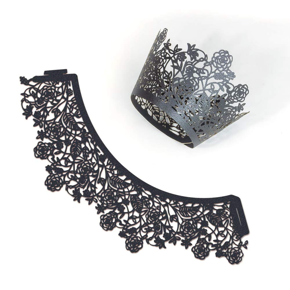 YOZATIA 60pcs Black Rose Lace Cupcake Wrappers Holders, Laser Cut Cupcake Liners Decorative Liners for Wedding Party Birthday Cake Decoration Supplies