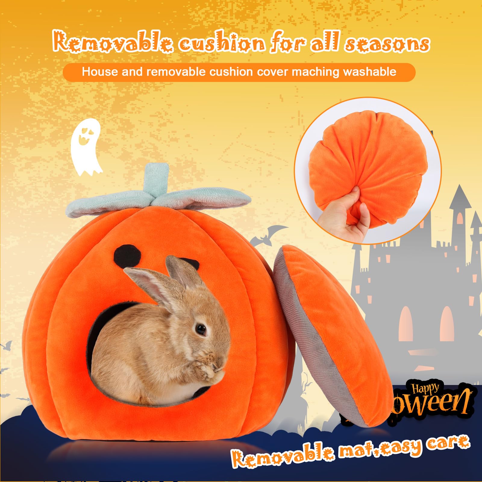 YUEPET Halloween Rabbit Bed Warm Bunny Hideout House, Cozy Washable Small Animal Hideout for Guinea Pig Rabbit Bunny Ferret Chinchilla 11.8"×11.8"