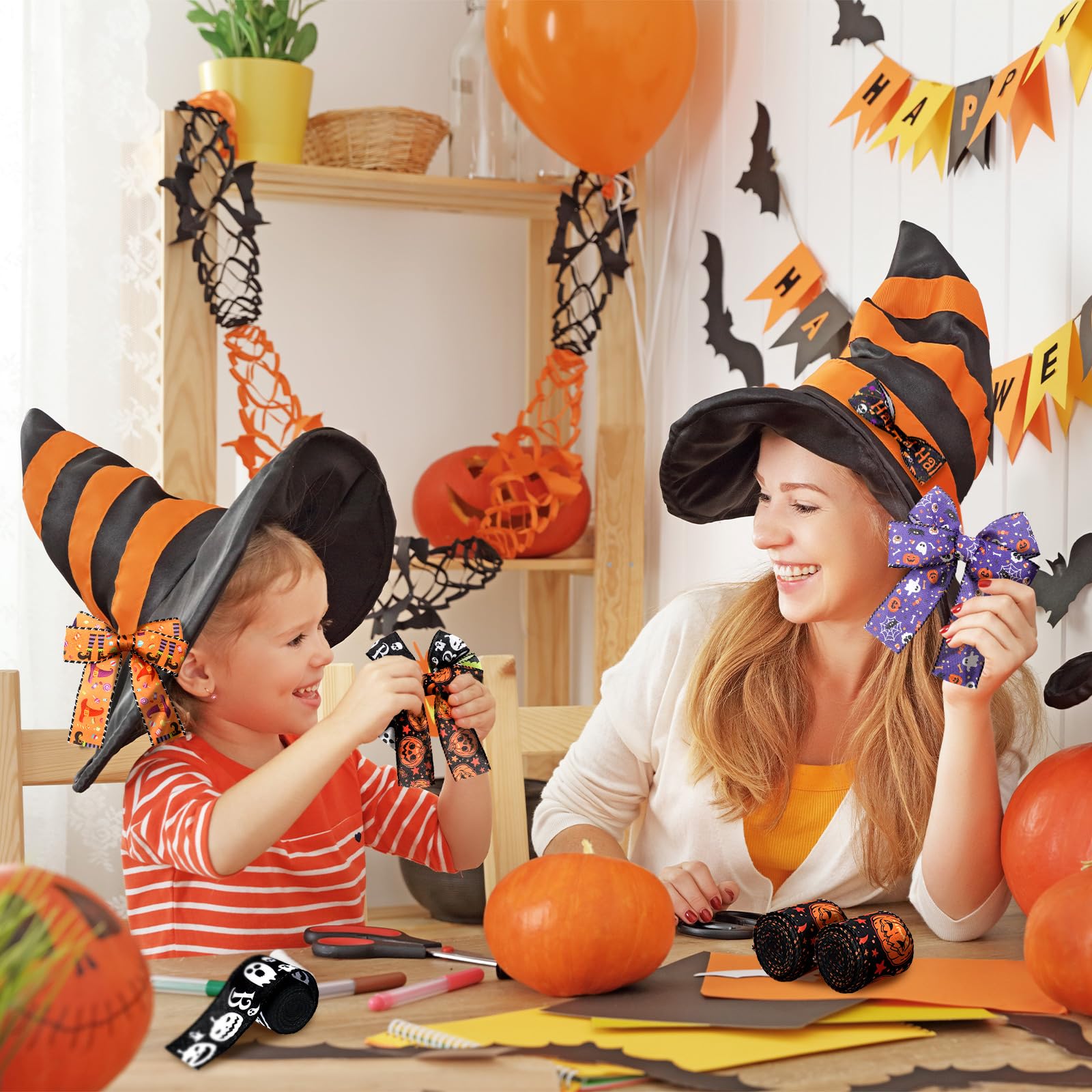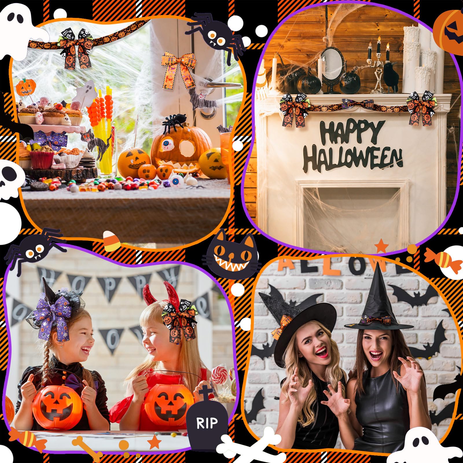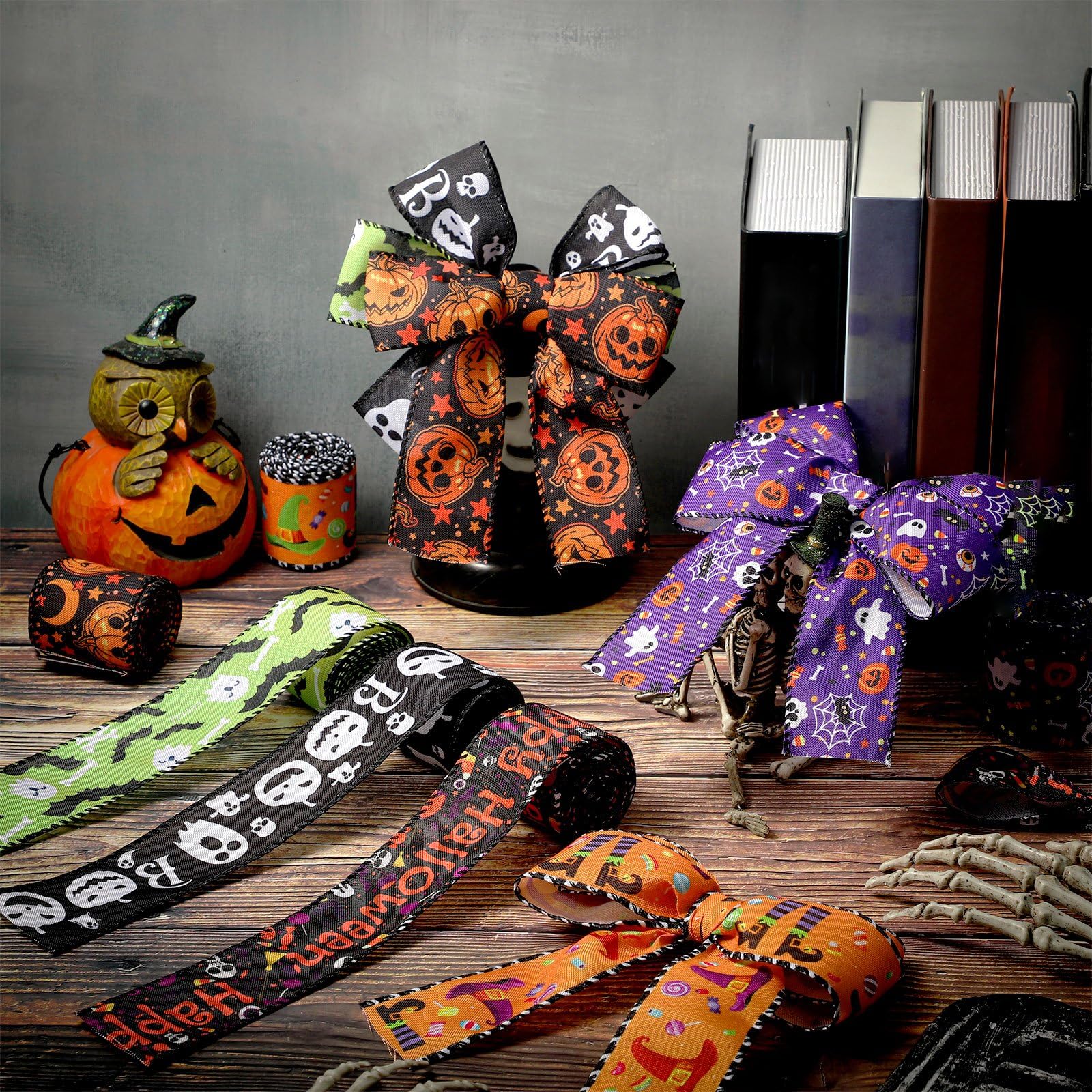 • Enhance Your Halloween Decorations: our Halloween ribbon is the good and delicate accessory to elevate your Halloween decorations; Whether you're adorning your front door, staircase, tables, stairs, railings, candles, lights, trees or even creating your own Halloween inspired centerpieces, our ribbon will add a beautiful and festive touch to many spaces