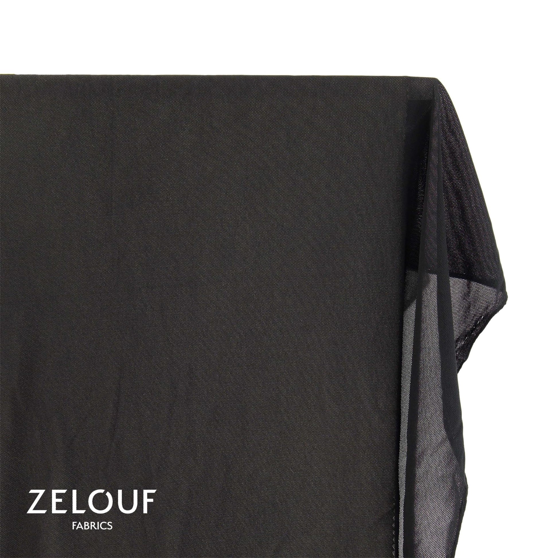 Zelouf Fabrics Black Nylon Mesh Fabric by The Yard – Stretchy, Soft Power Mesh See-Through Fabric for Costumes, Lining, DIY, Crafts, Dancewear - 1 Yard