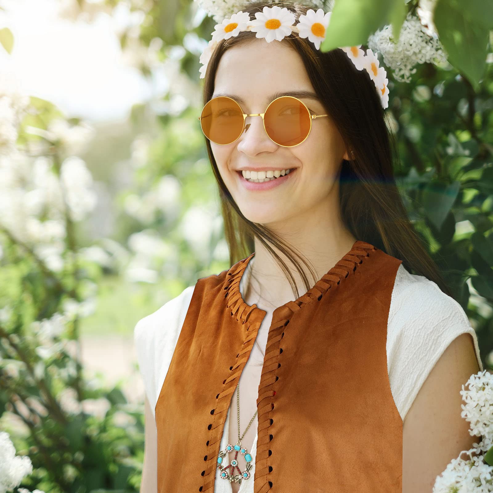 • Hippie Costume Accessories Set: this package comes with 1 piece of sleeveless vest, 1 piece of peace sign necklace, 1 piece of boho sunflower crown and 1 pair of retro sunglasses, 4 pieces of 70s costumes for women in total, this combination is very practical and thoughtful for you