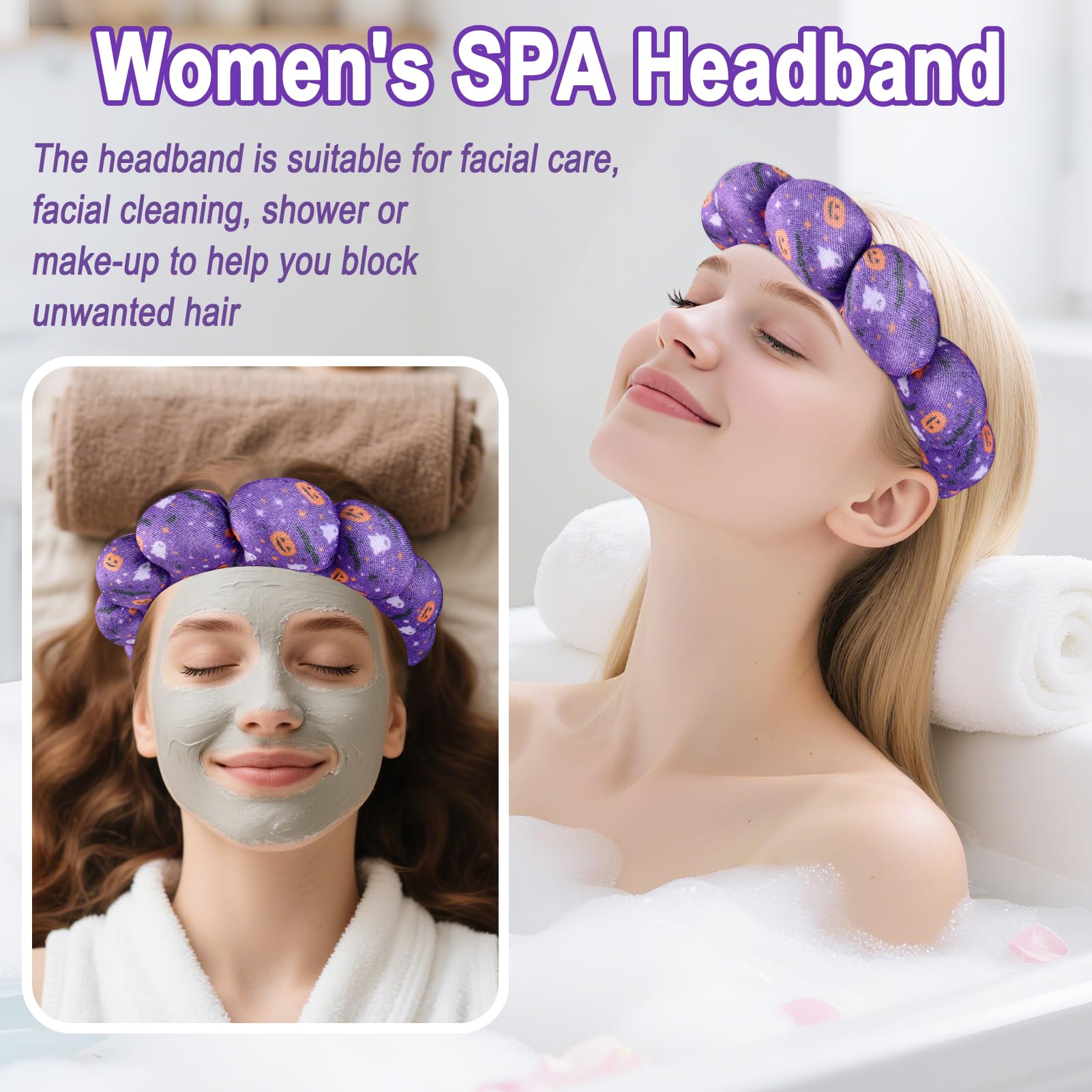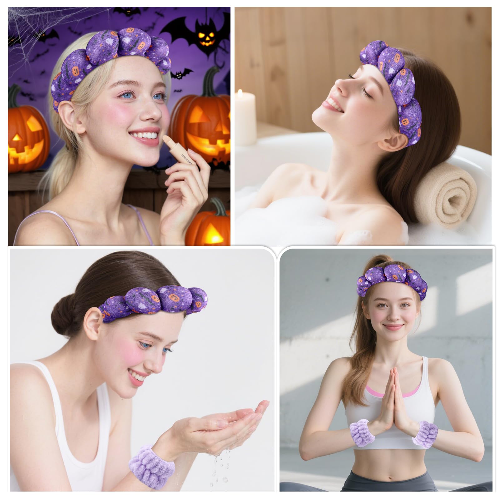 Zkptops Spa Headband for Washing Face Wristband Set Sponge Makeup Skincare Velvet Fabric Bubble Get Ready Hairband Puffy Headwear Non Slip Thick Thin Hair Accessory Gift for Women Girls(Halloween)