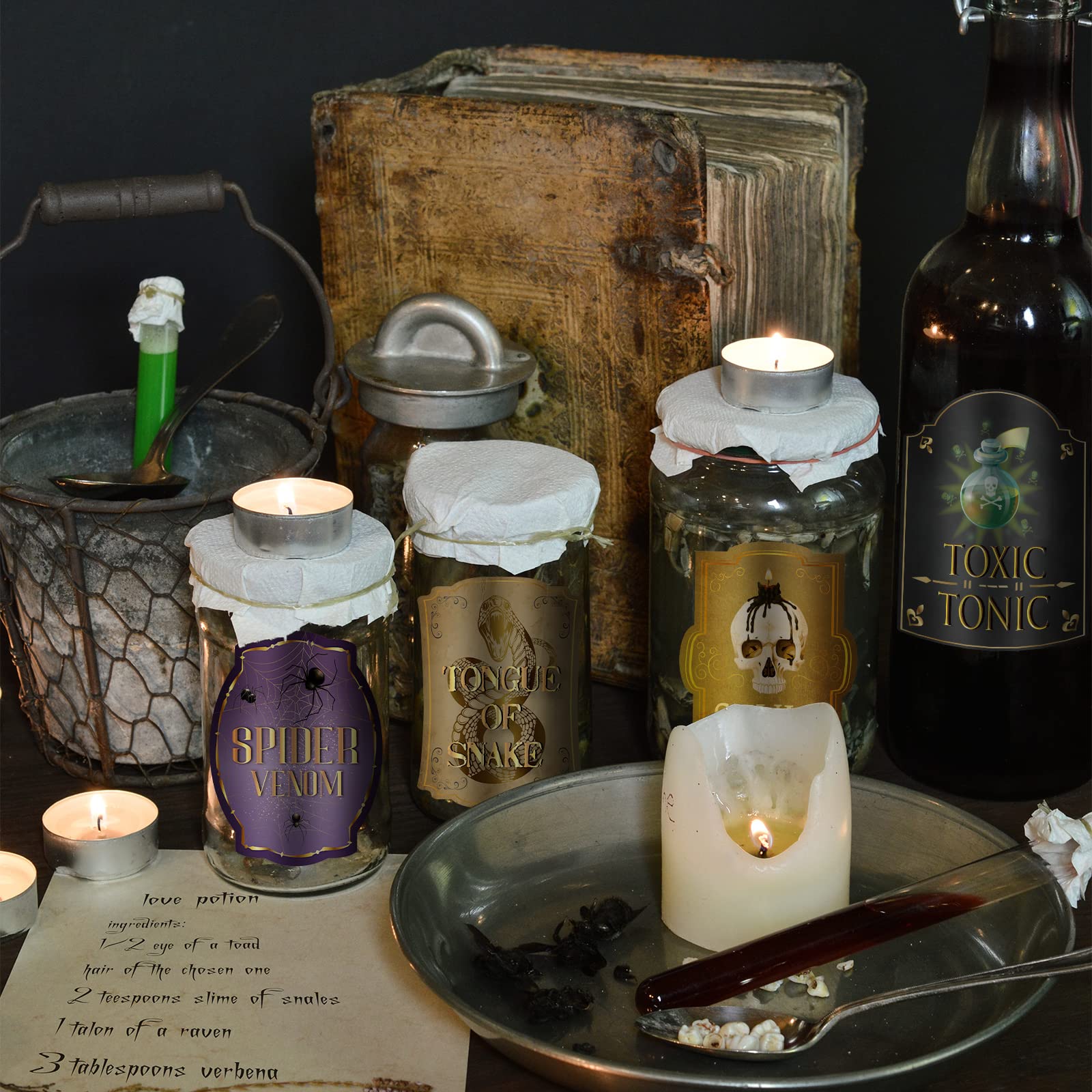Commendable Quality: your creepy apothecary label stickers are bigger and stronger than most, each animal pattern is printed on quality waterproof material, not easy to get wet, and very reliable, just peel it off and stick the label on your favorite bottle for vintage Halloween party decorations