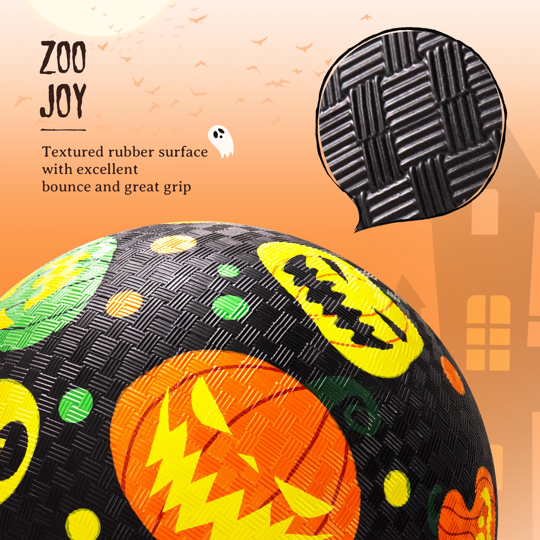 ZOOJOY Pack of 2 Cartoon Playground Balls, Halloween Balls for Toddler 3-12, 8.5" Rubber Ball Bouncy Kickball, Indoor & Outdoor Game Toys for Boys Girls with Pump
