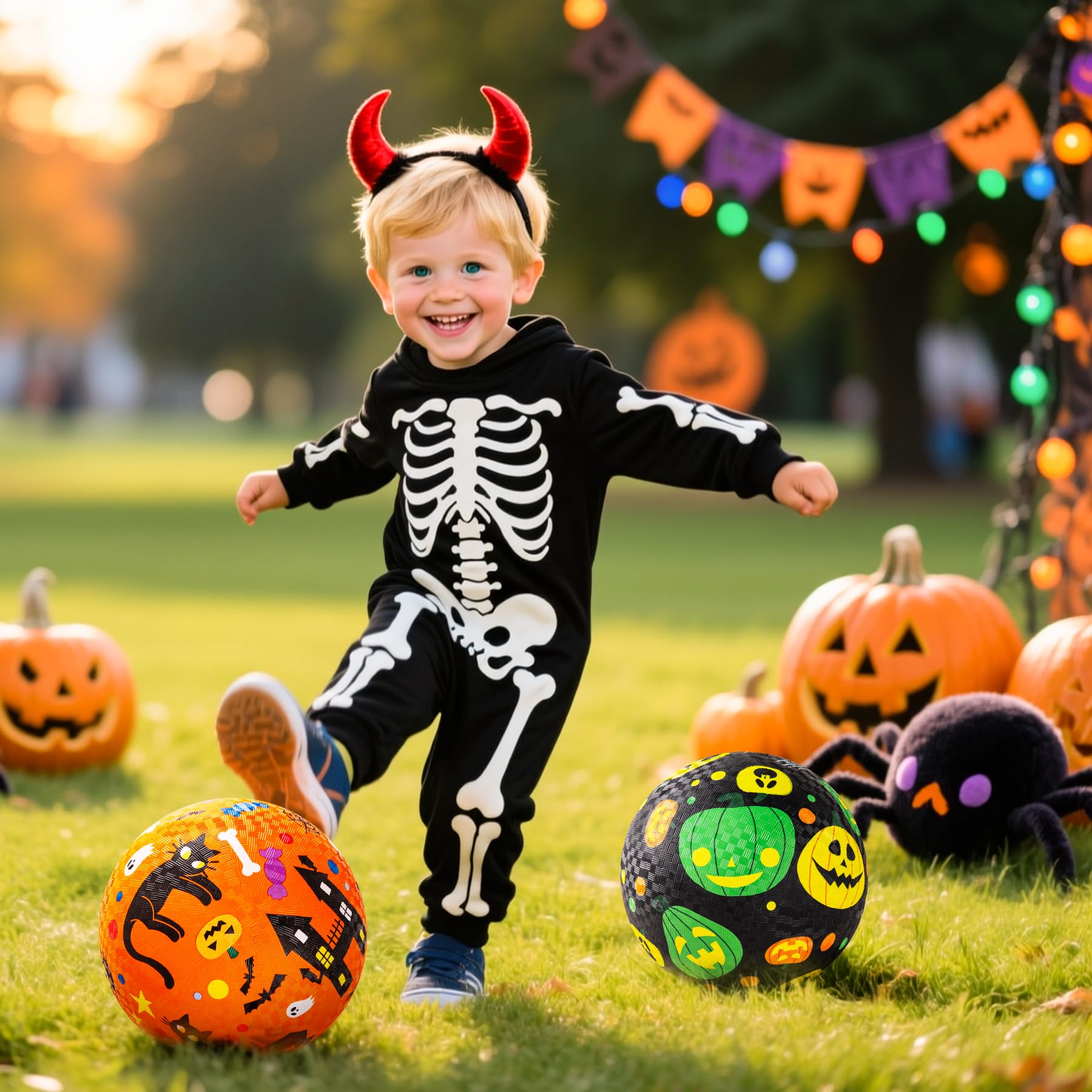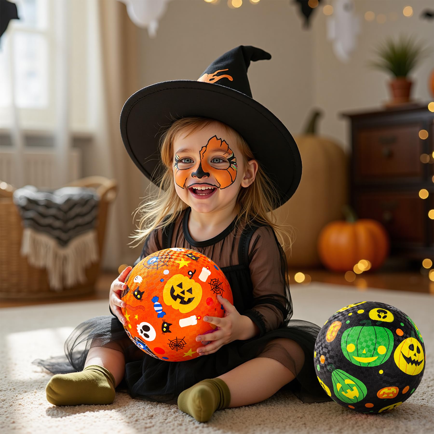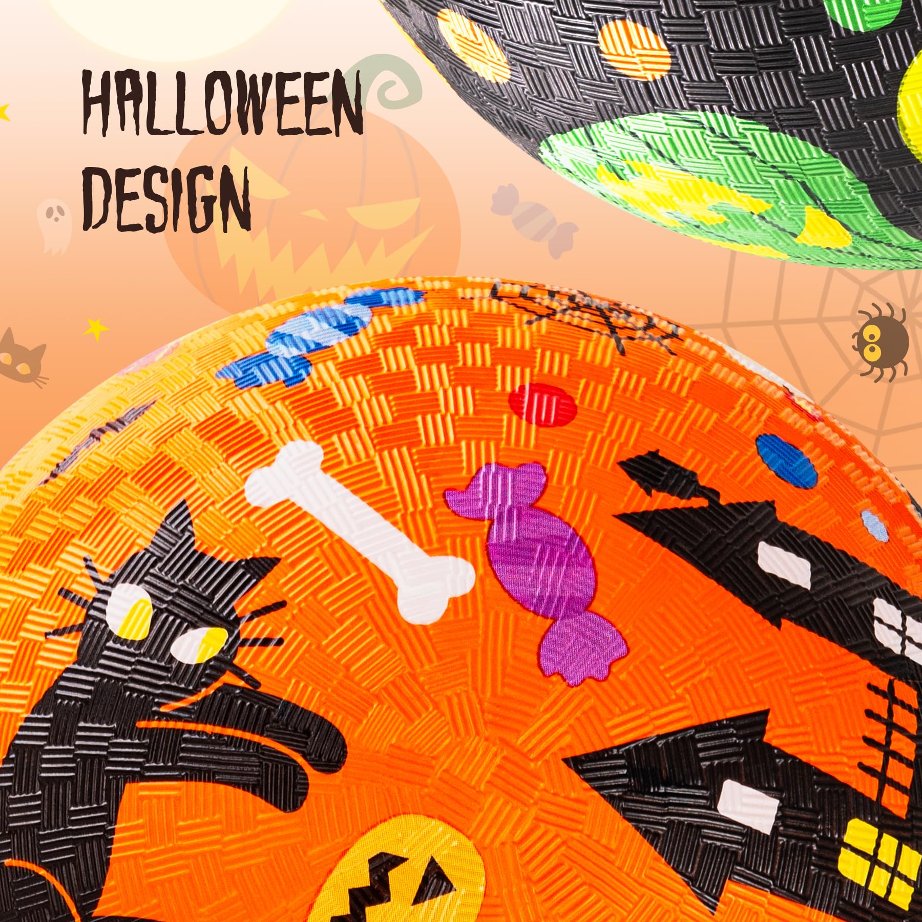 • Halloween Playground Balls Set: Each pack includes 2 cute Halloween-themed rubber balls and 1 pump, easy to inflate, balls are 8.5' in diameter,the size is appropriate for toddlers to play with. The cartoon patterns are attractive to babies and kids. Recommended for ages 3 and up