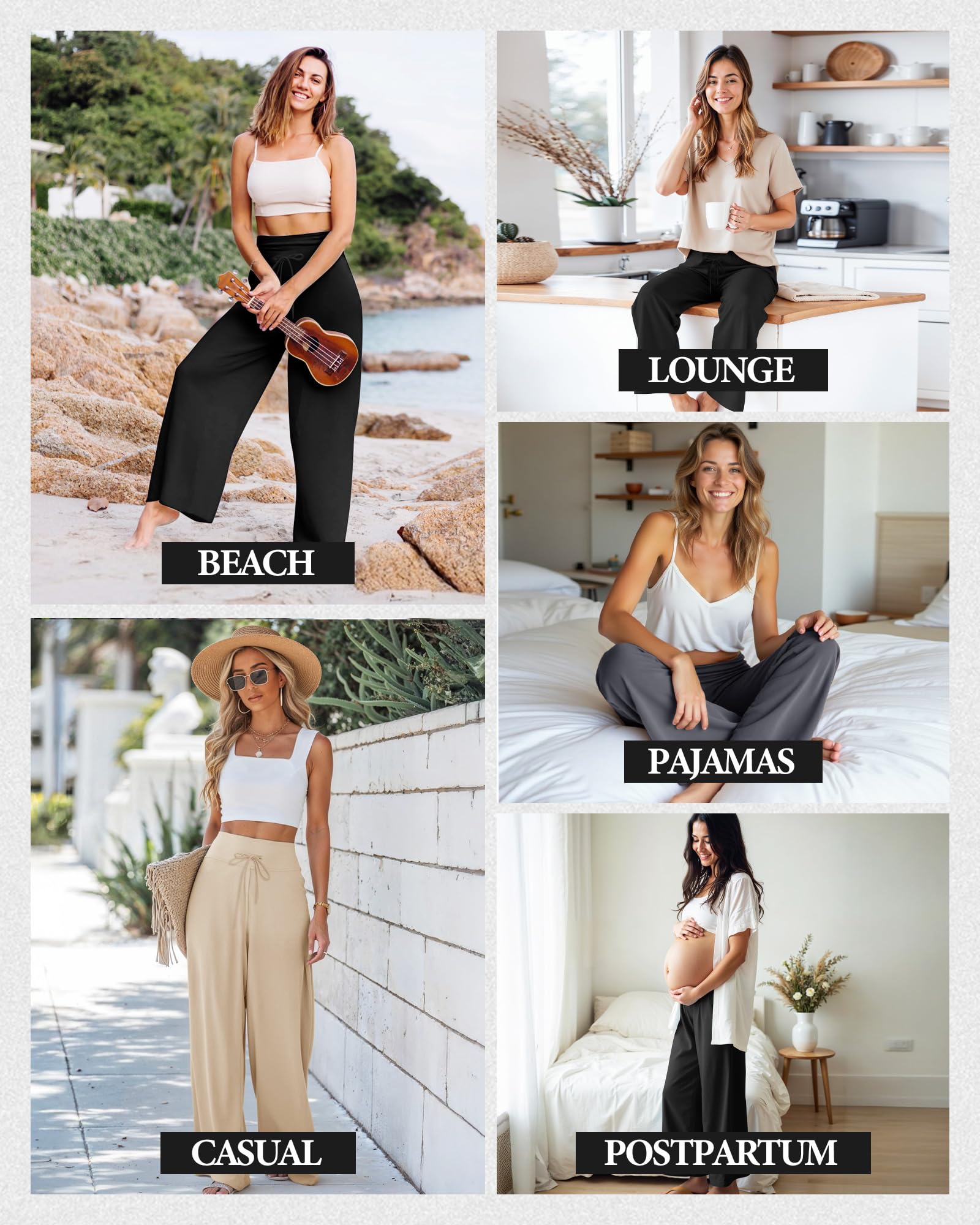 • SOFT TOUCH: The lightweight, smooth fabric is super soft and non-see-through, has 4-way stretchy, comfy just like your second skin. The stretchy lounge palazzo pants with high waisted design wrap your belly well.