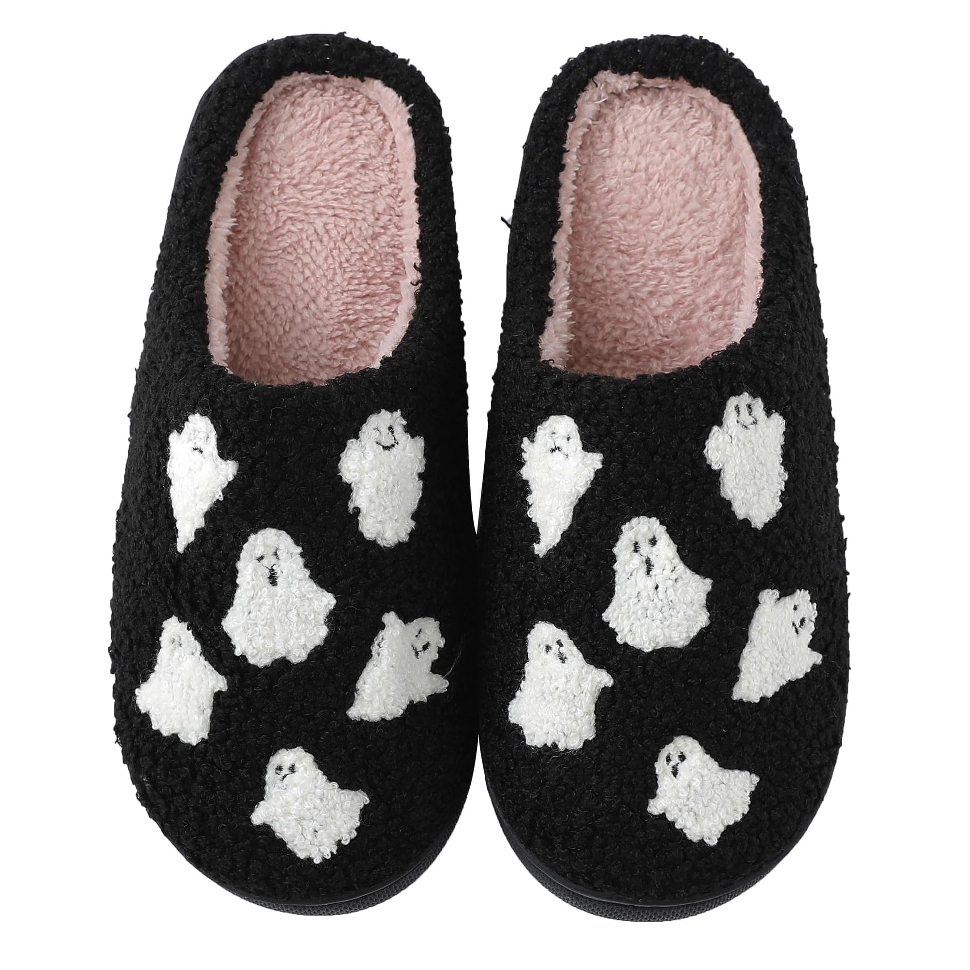 Zuiyisu Halloween/Christmas Slippers for Women Men, Soft Plush Fuzzy Winter holiday slippers, Retro Cozy House Slippers, Comfy Bedroom Indoor Outdoor Shoes, Halloweenghost