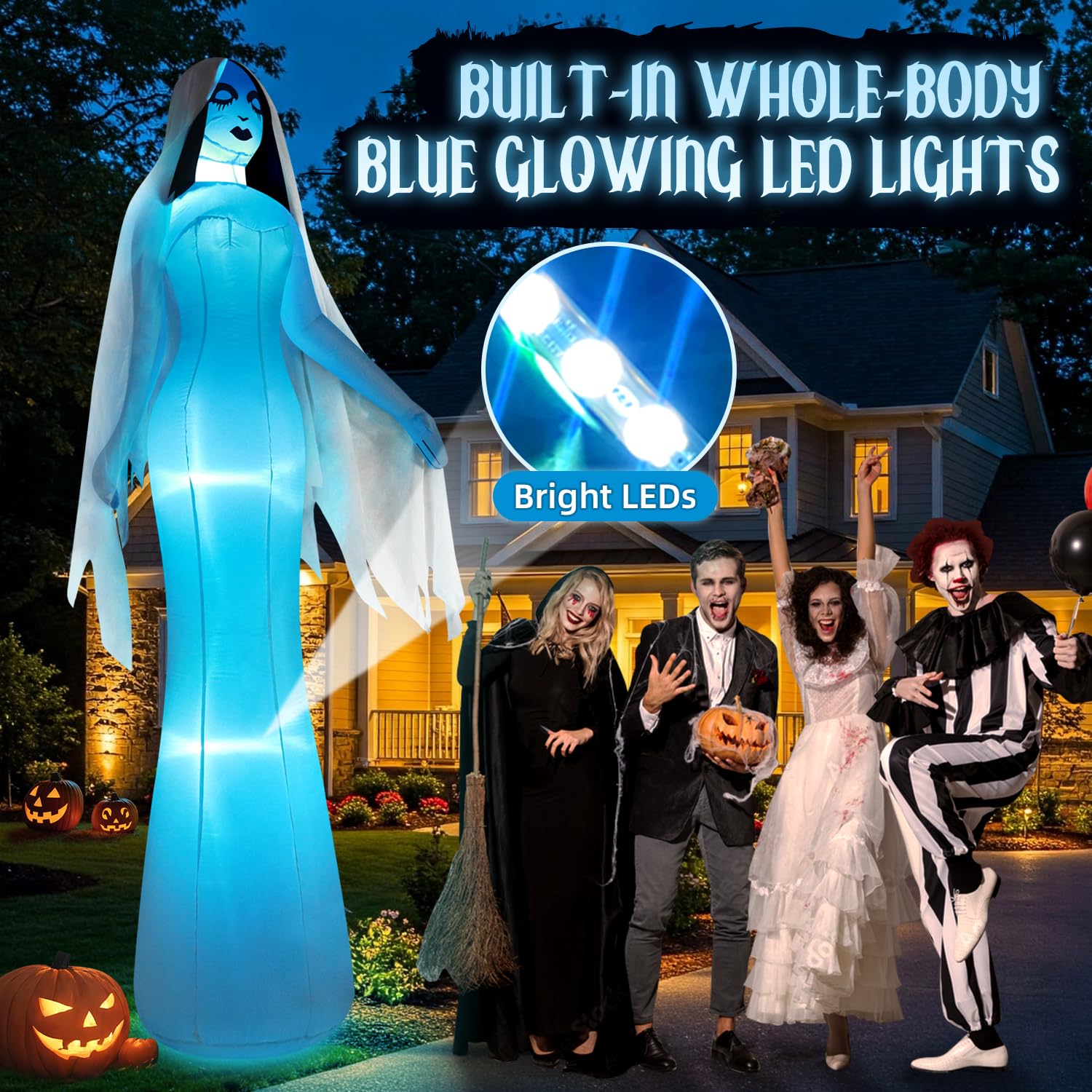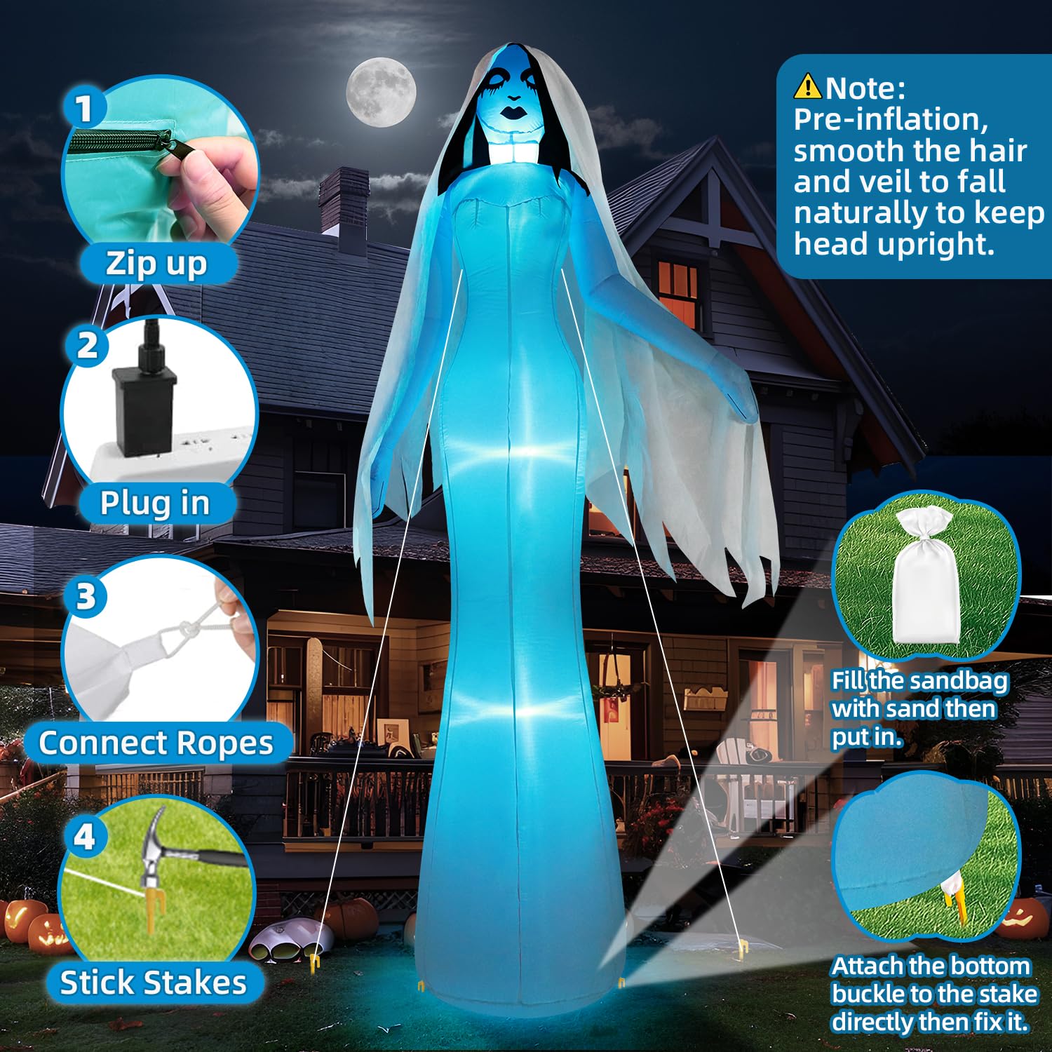 zukakii 12FT Giant Halloween Inflatables Ghost Bride, Halloween Decorations Outdoor Blow Up Yard Decorations Built-in Whole-Body Blue Glowing LED Lights Huge Halloween Blowups for Outdoor Holiday